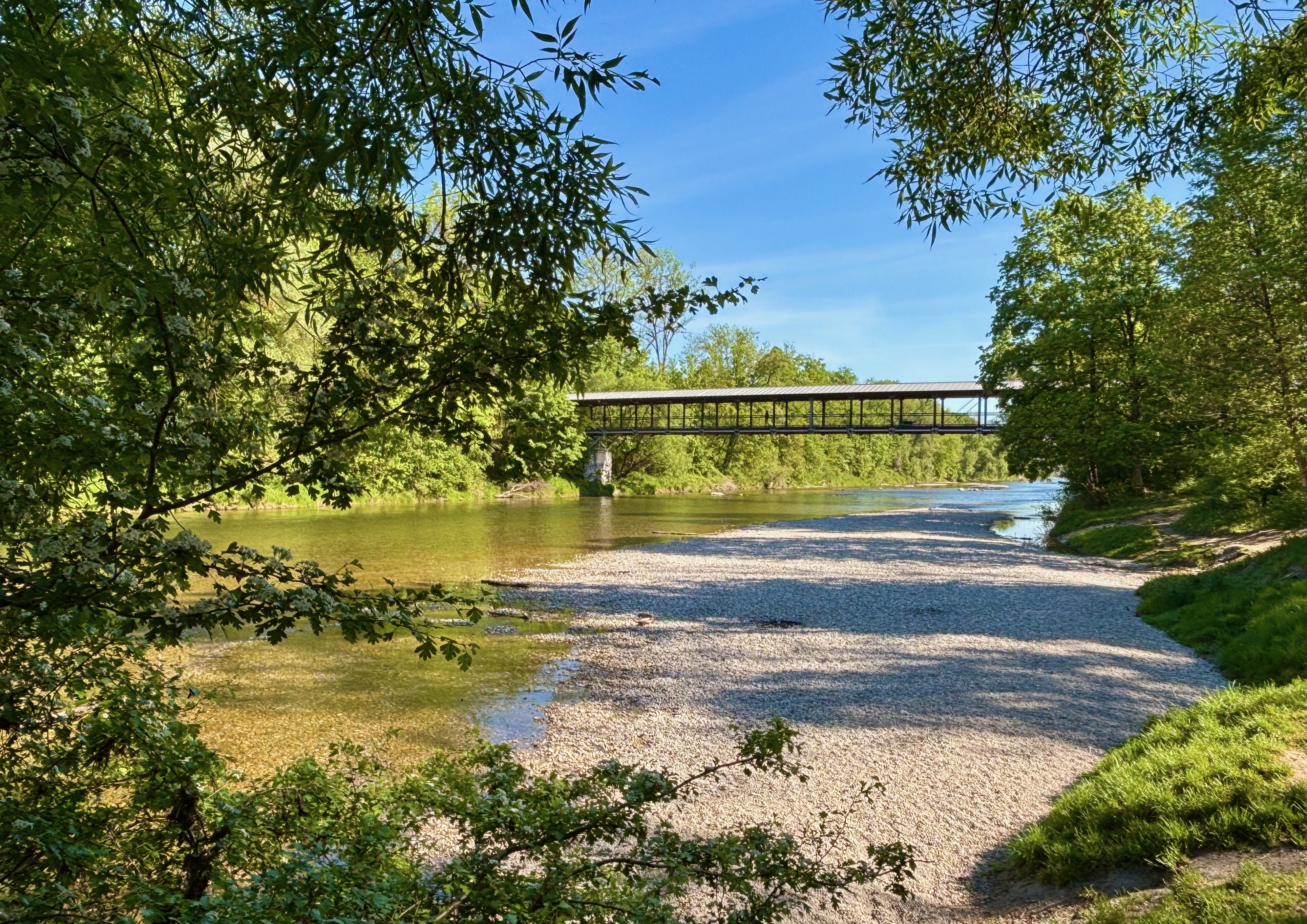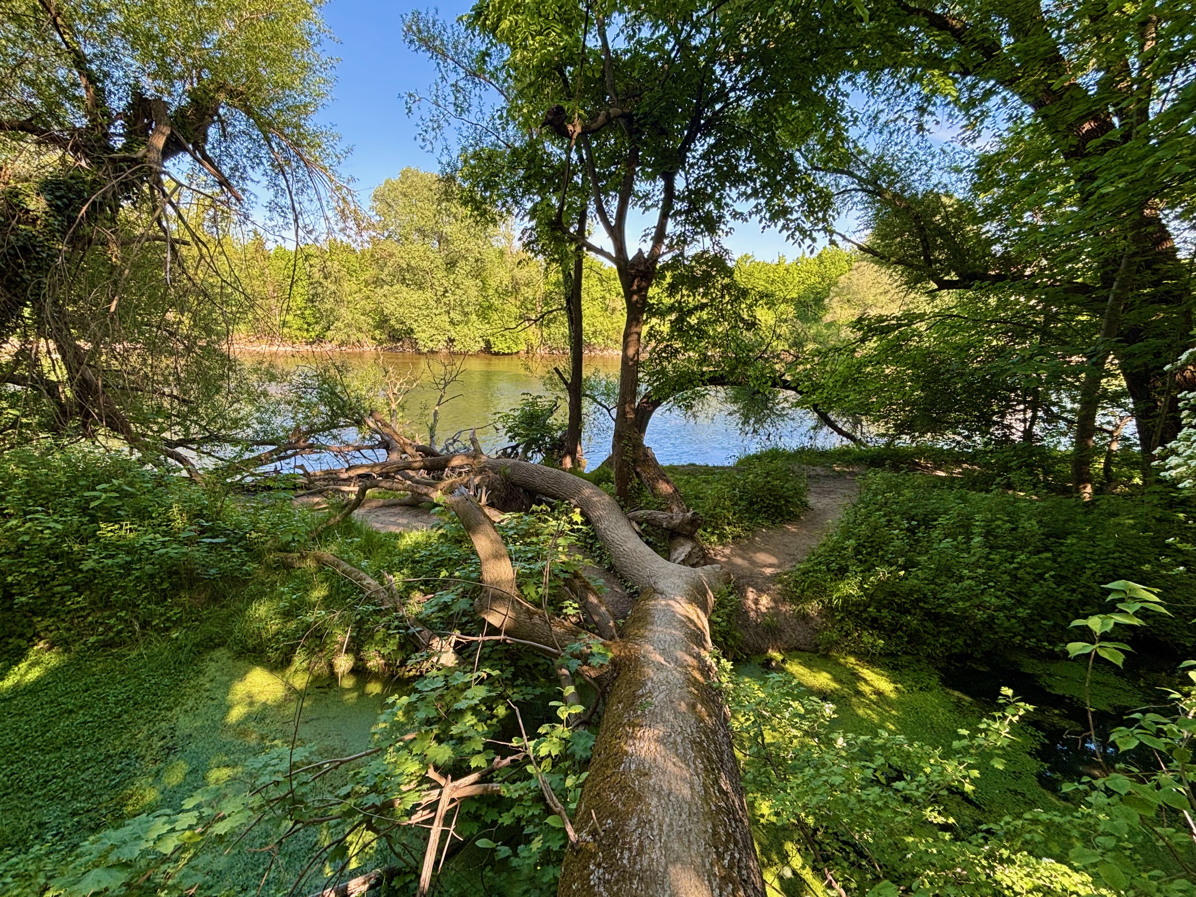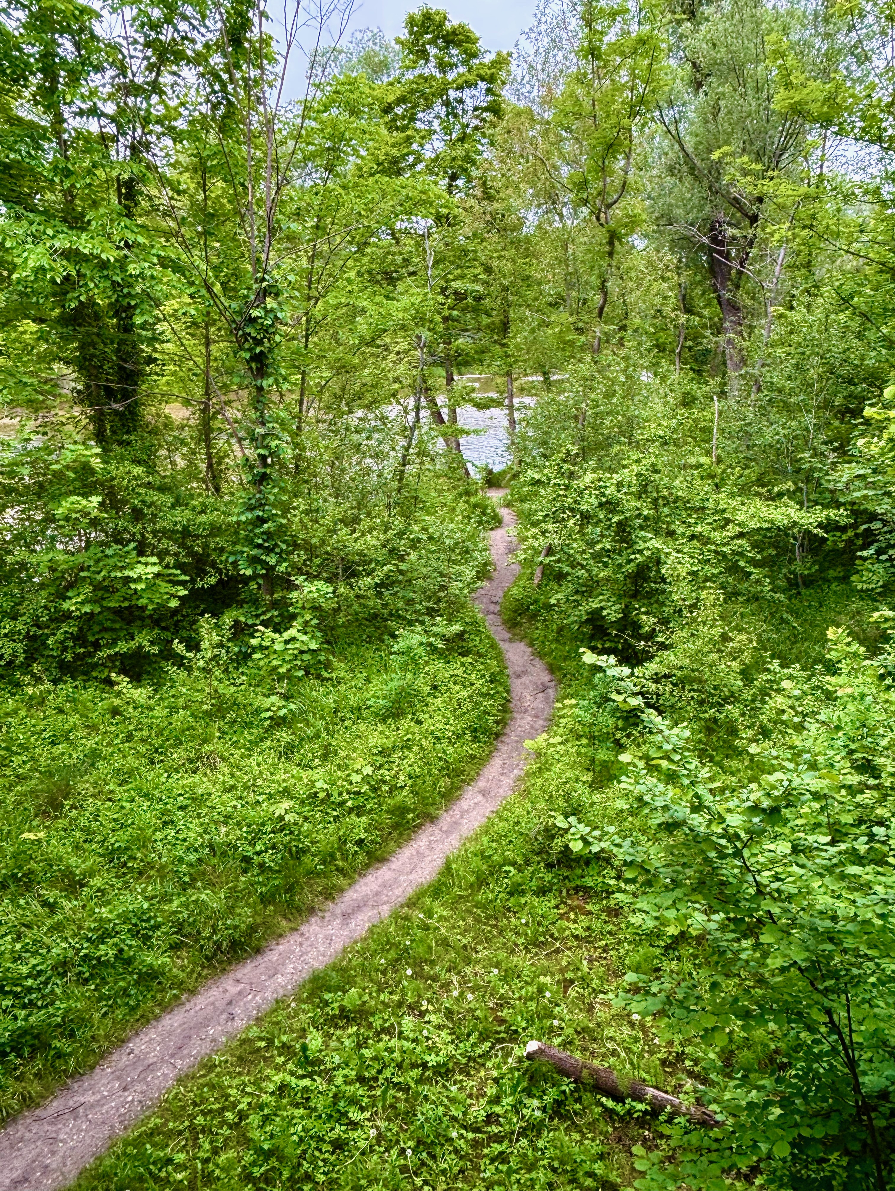 Crossing the Isar via a footbridge, we can soon leave the path again for a trail through a meadow to jump across a canal and resume an intricate slalom along the left bank – this is the most technical part of the run. The remaining 6km bring us back to the starting point along well-maintained, official paths.