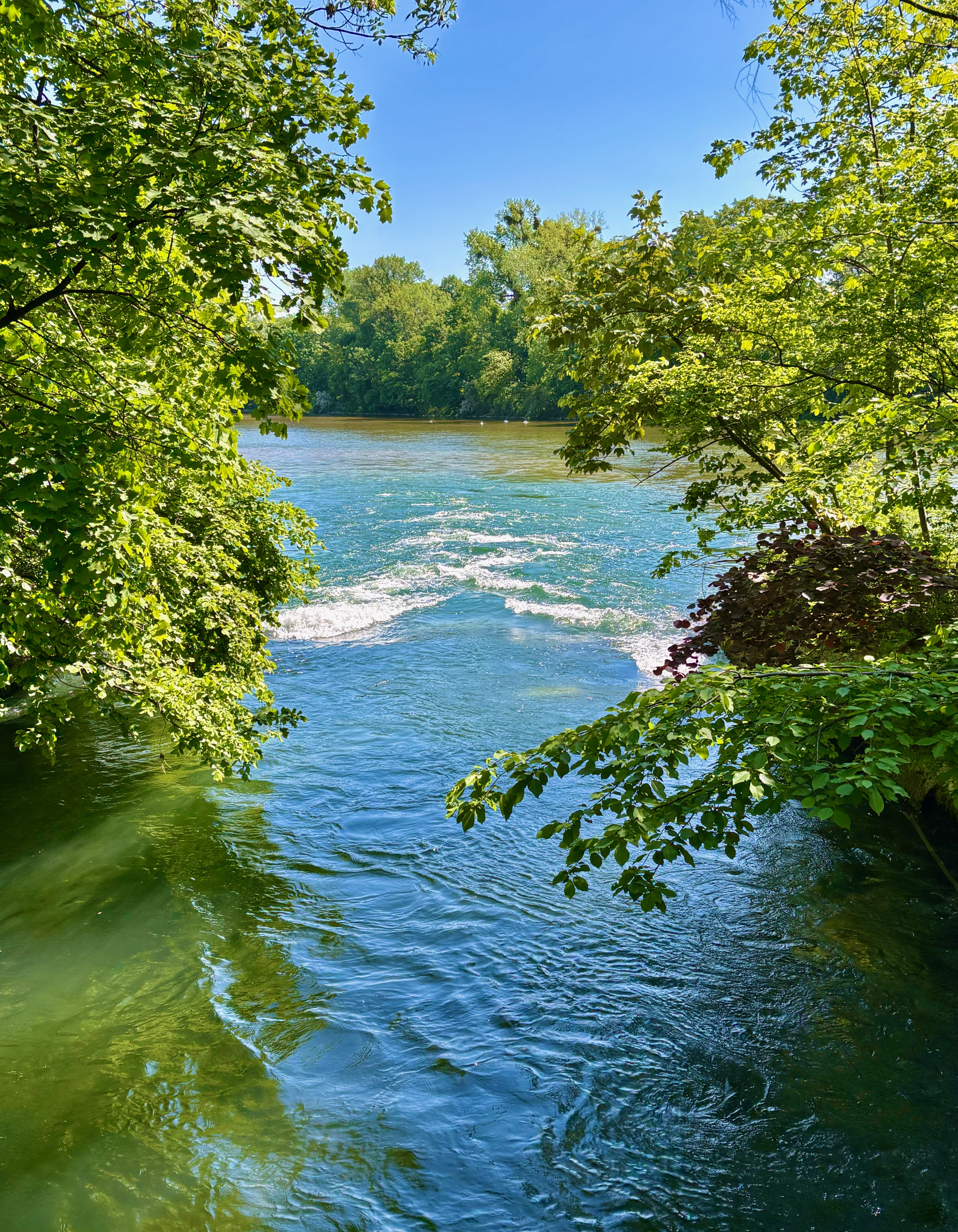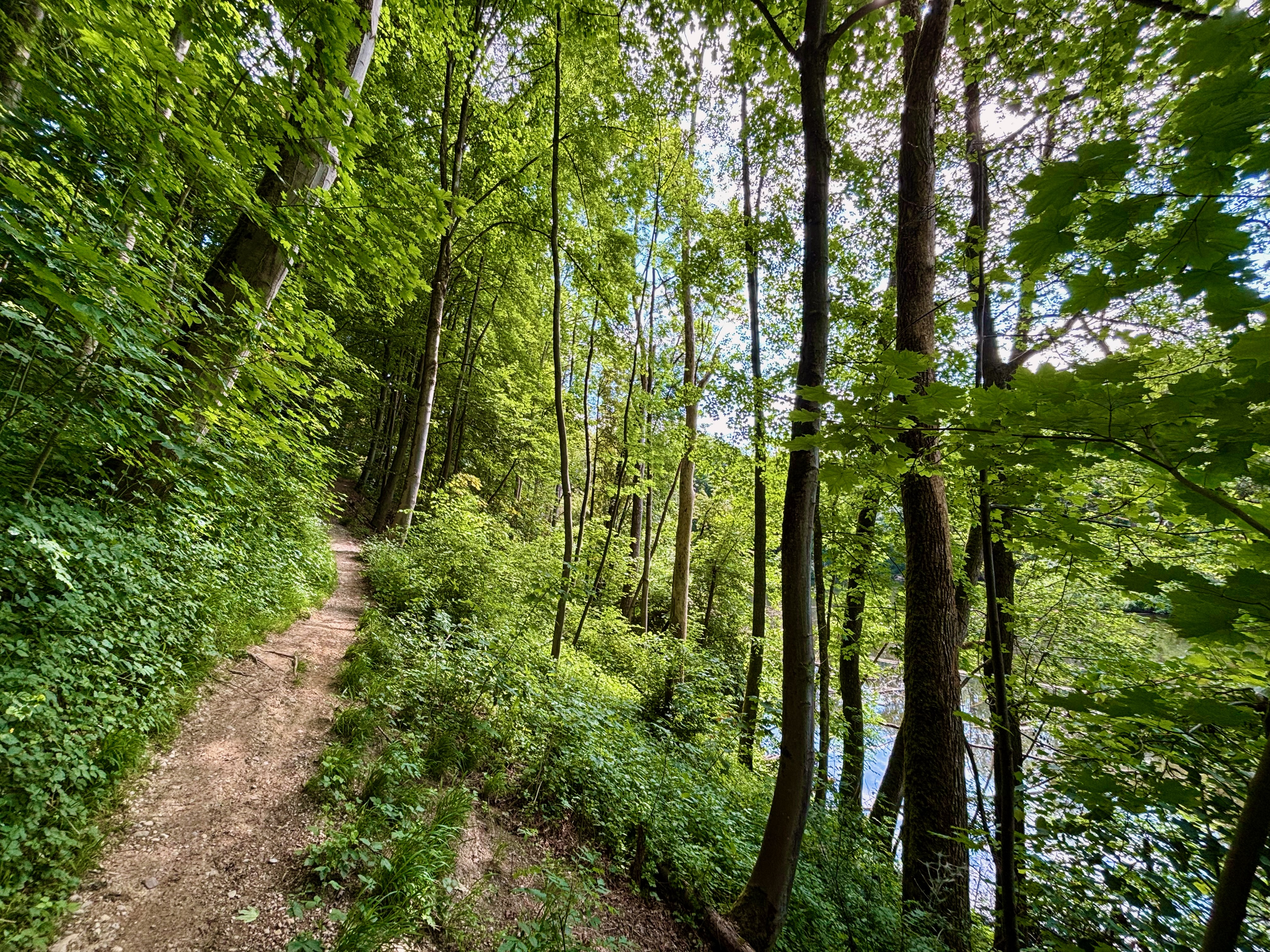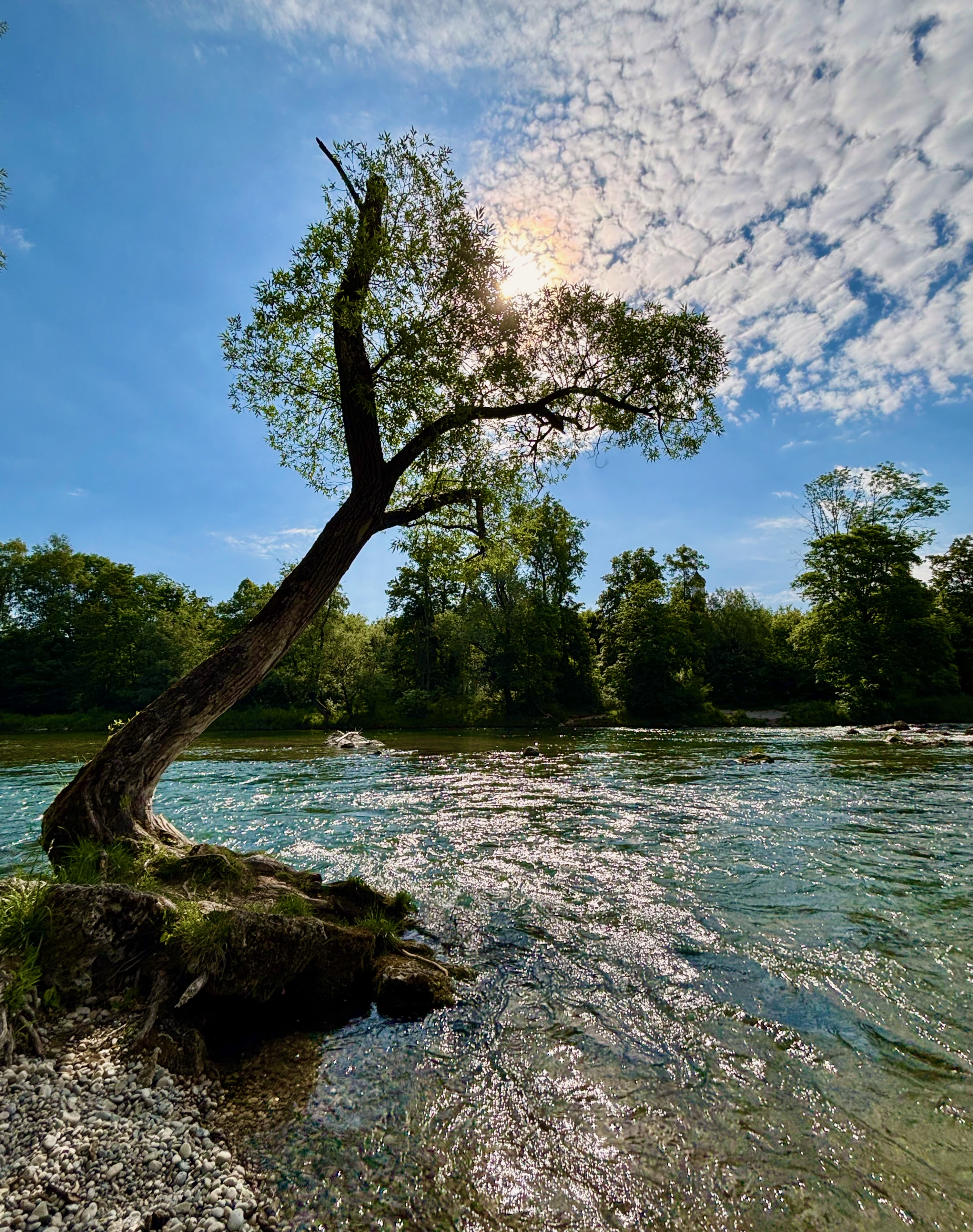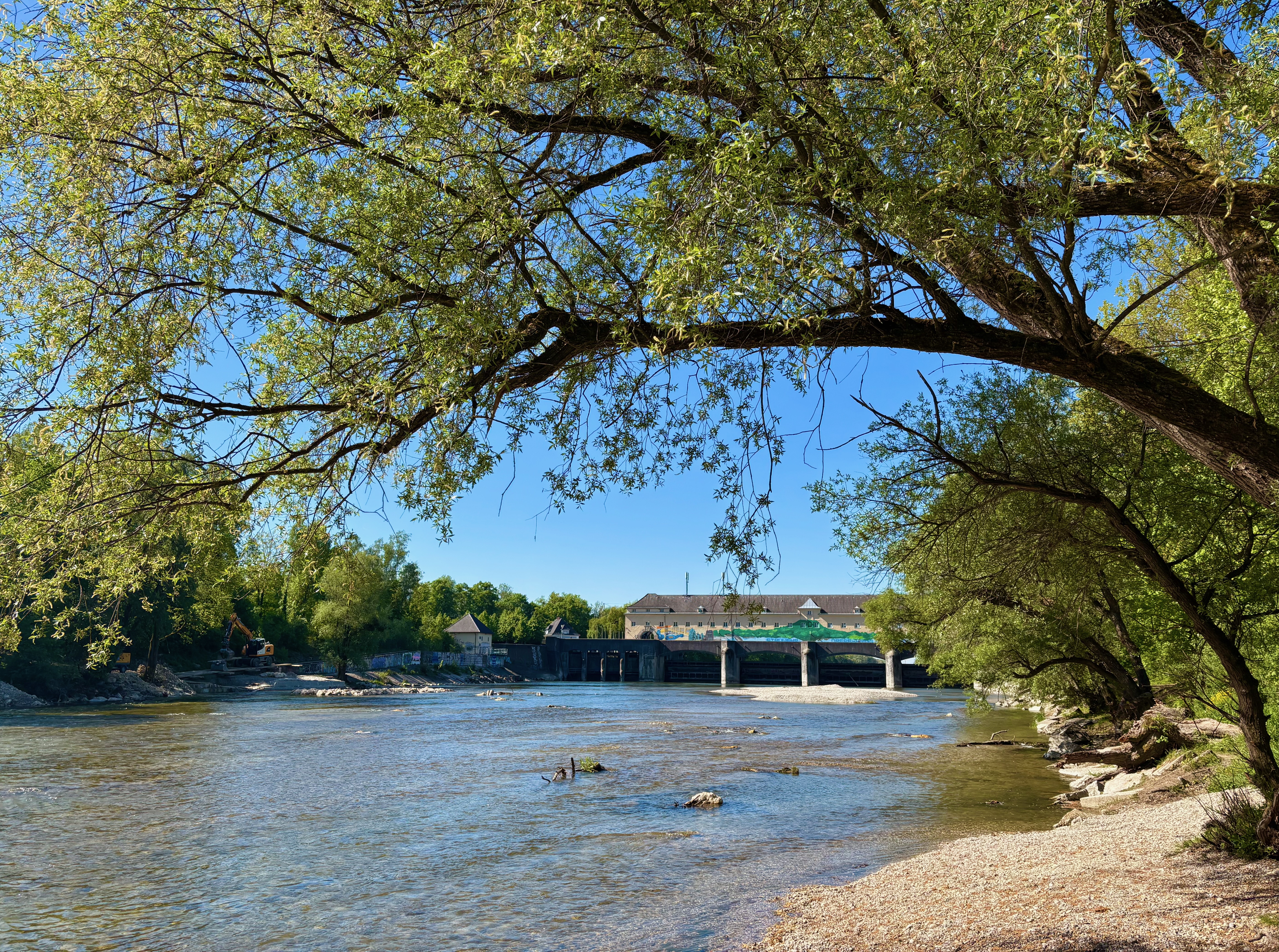 Starting on a relaxed park trail in the Isarauen on the river’s right bank, the exciting, moderately technical river trail is accessed by cutting hard left down a steep slope just after the bridge underpass below Max-Joseph Brücke (there is a gap in the railing) – it runs almost 10k to the highest point of the route.