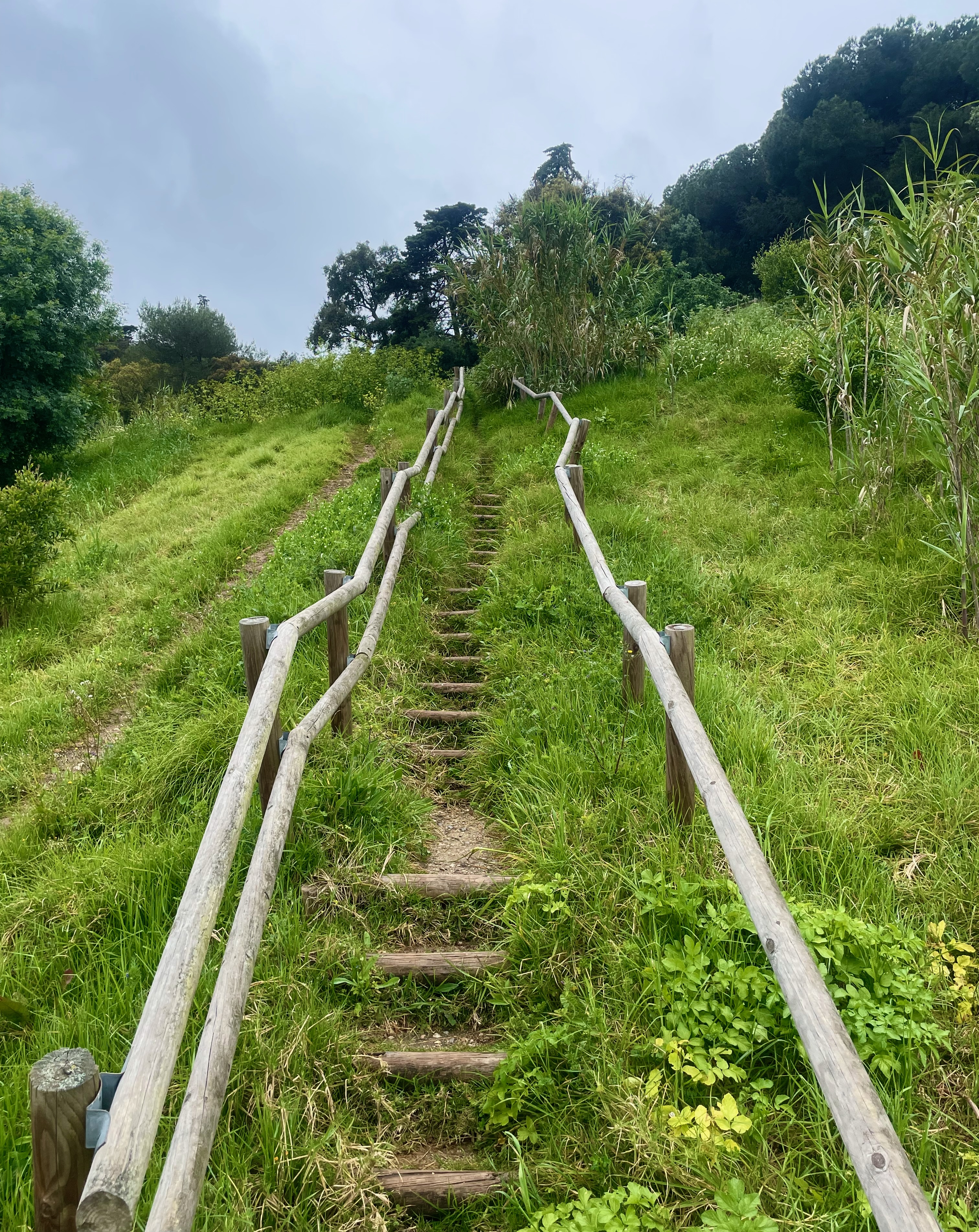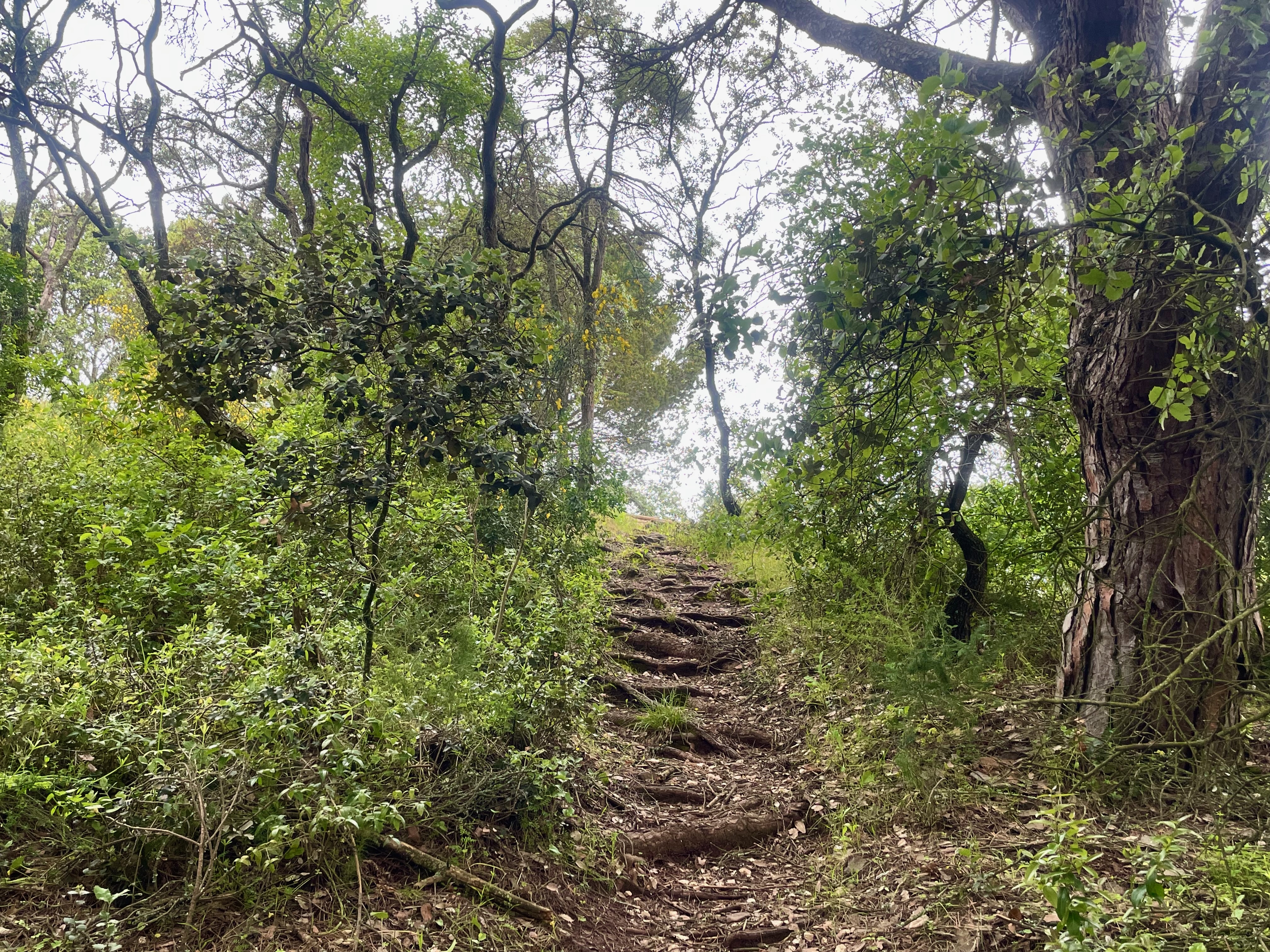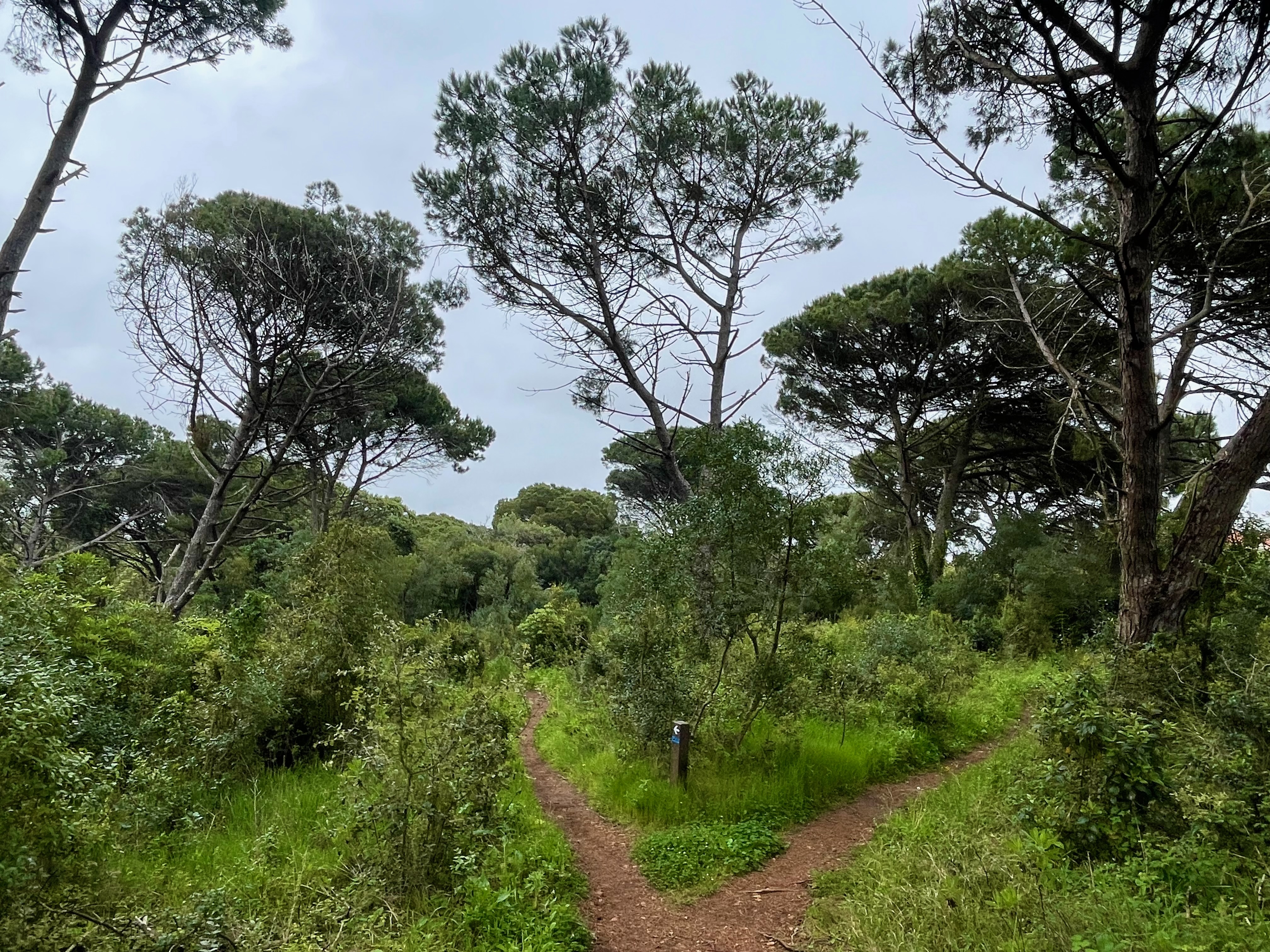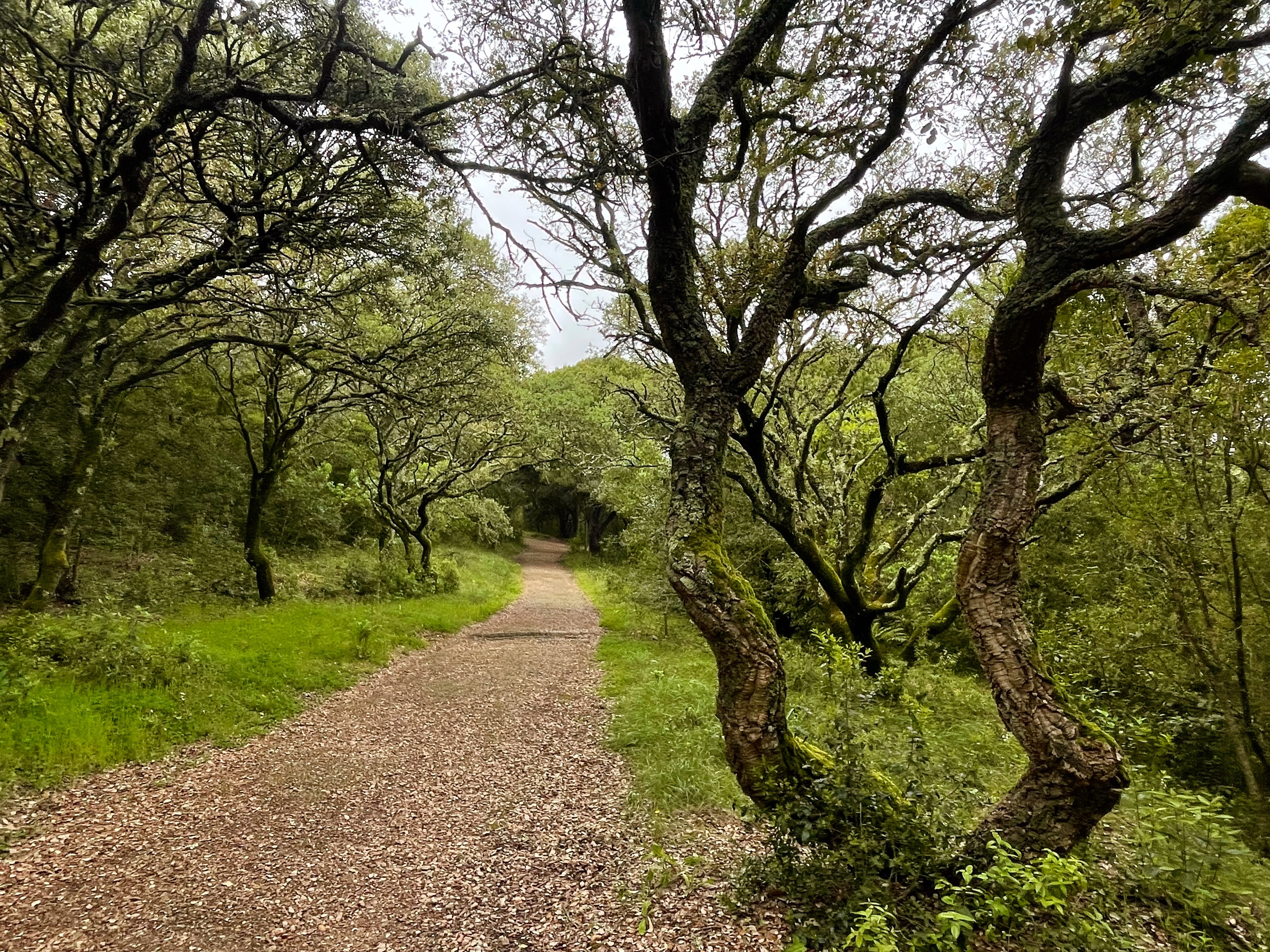 The circuit soon reaches steep stairs that take us out of the city and deep into the heart of Monsanto Forest in a long climb. Moderately technical trails and wide forest paths through a lush variety of local flora immediately let us forget the vicinity of a vast urban area.