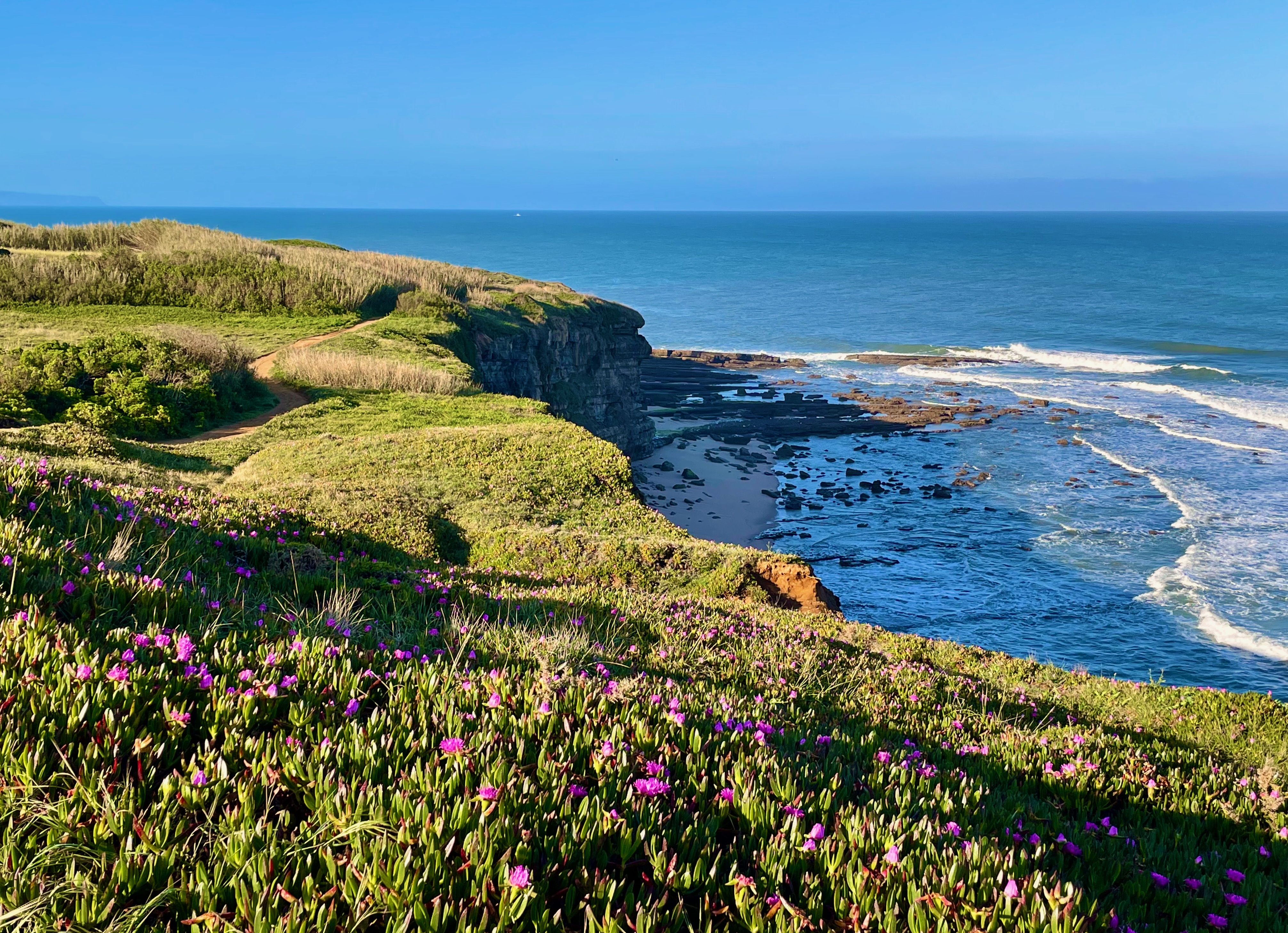Varied and easy, the run follows coastal flow trails north of the fishing town of Ericeira along a string of beaches to Praia de São Lourenço. Retracing part of the track to feast on the spectacular cliff-top views, the route continues inland along a beautiful, hidden trail through a lush creek valley circling back to town. Carpets of bright pink wildflowers were the most memorable sight running the route in spring.