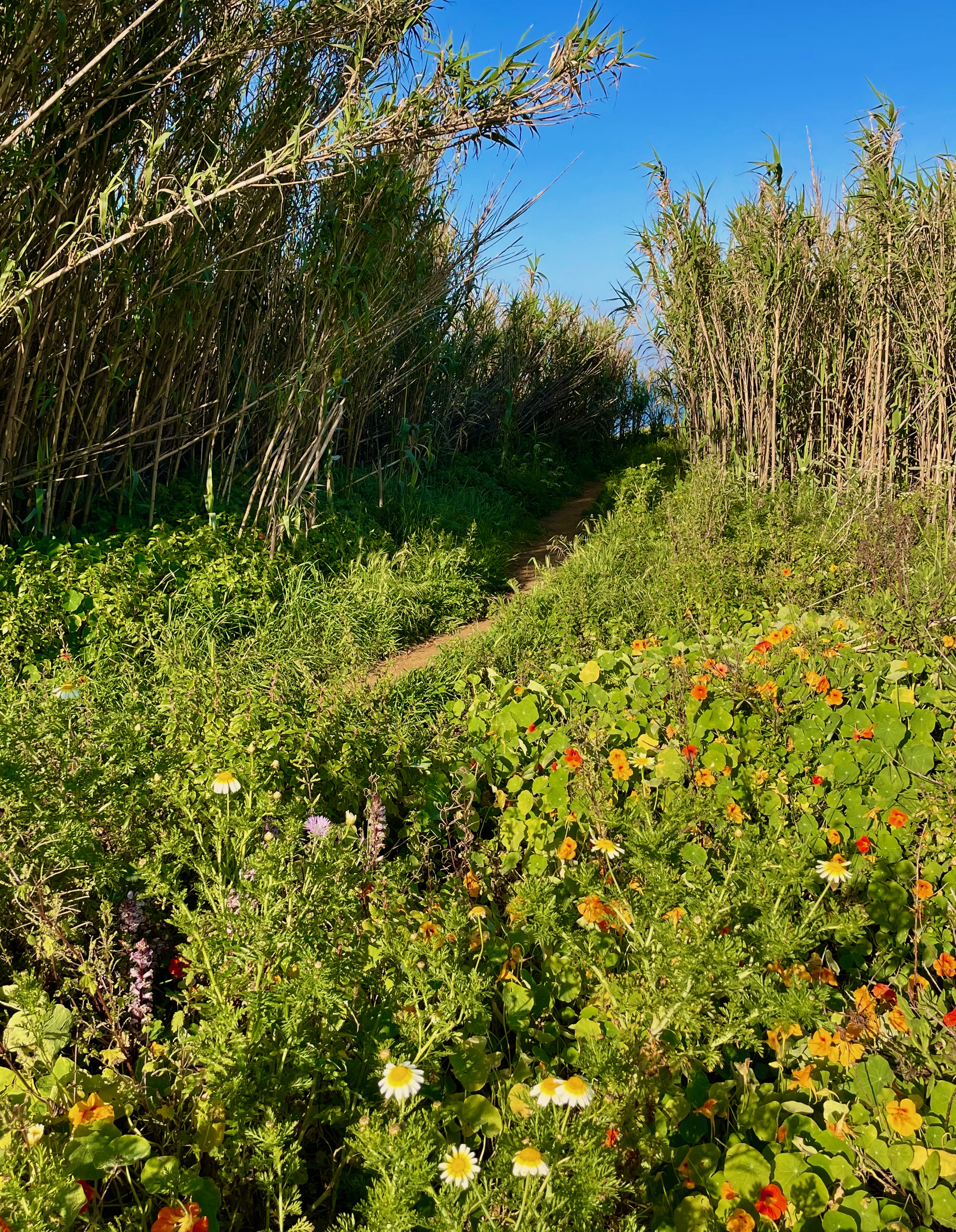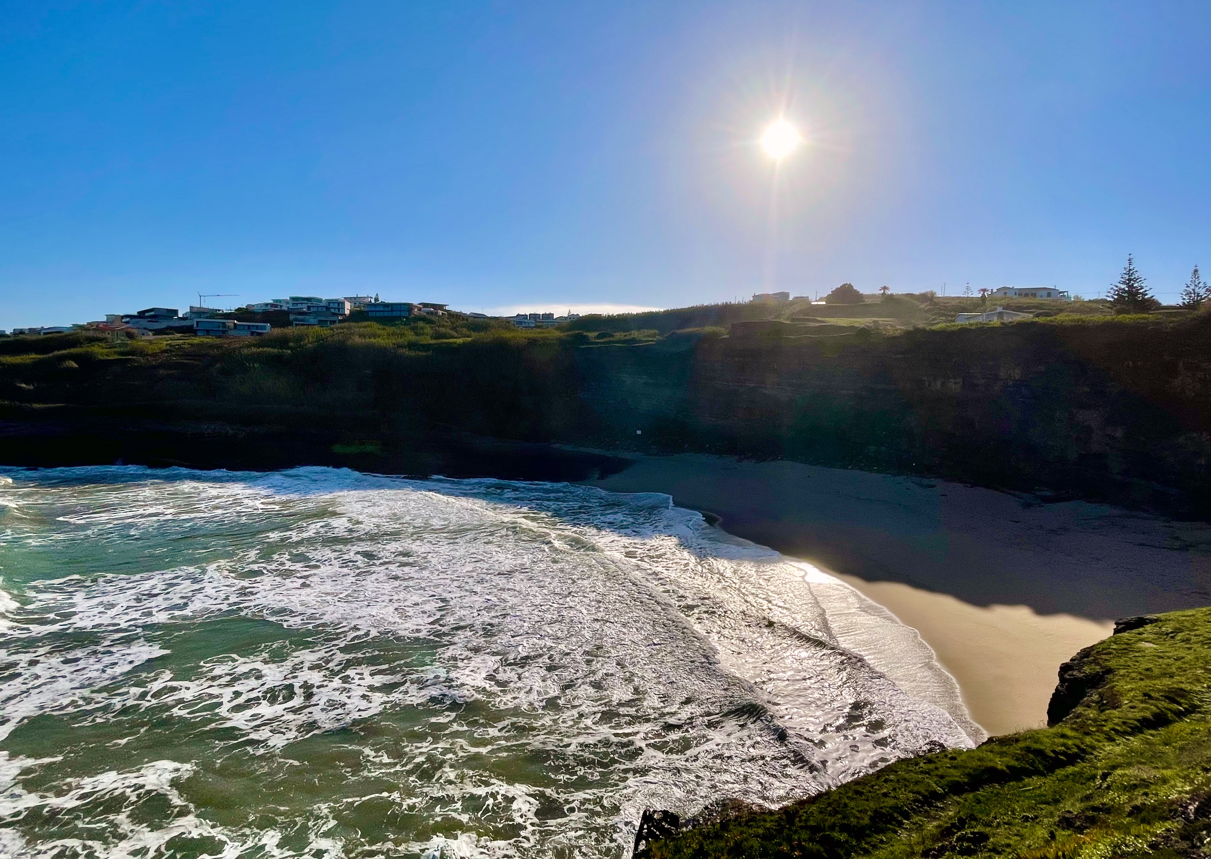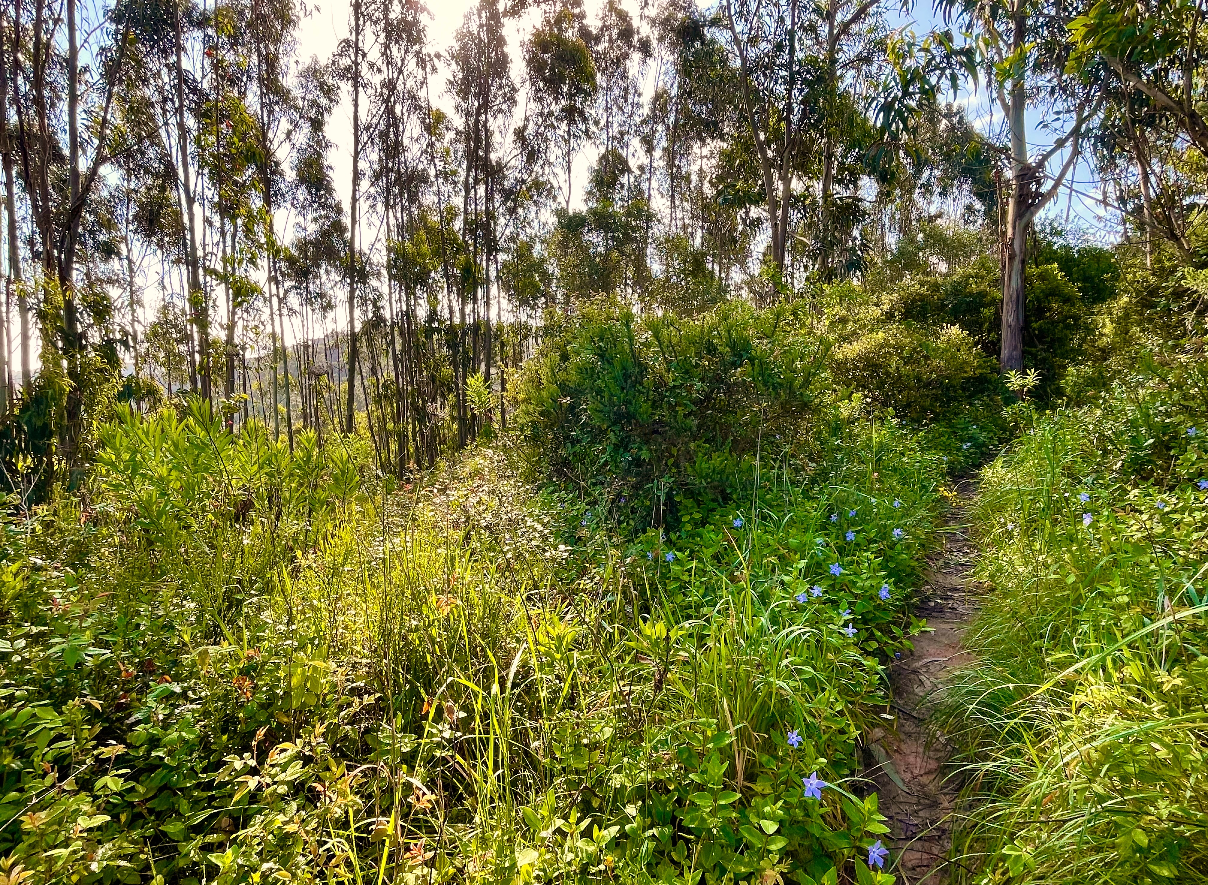 Across a creek, beyond the beach, a beautiful, lonely flow trail leads trough riots of wild flowers after a steep climb back up to the cliff top. It continues to remote, tiny Praia dos Coxos and on to our destination, where is possible to turn around at anytime, as the run retraces its steps to the surfer’s beach before veering inland.