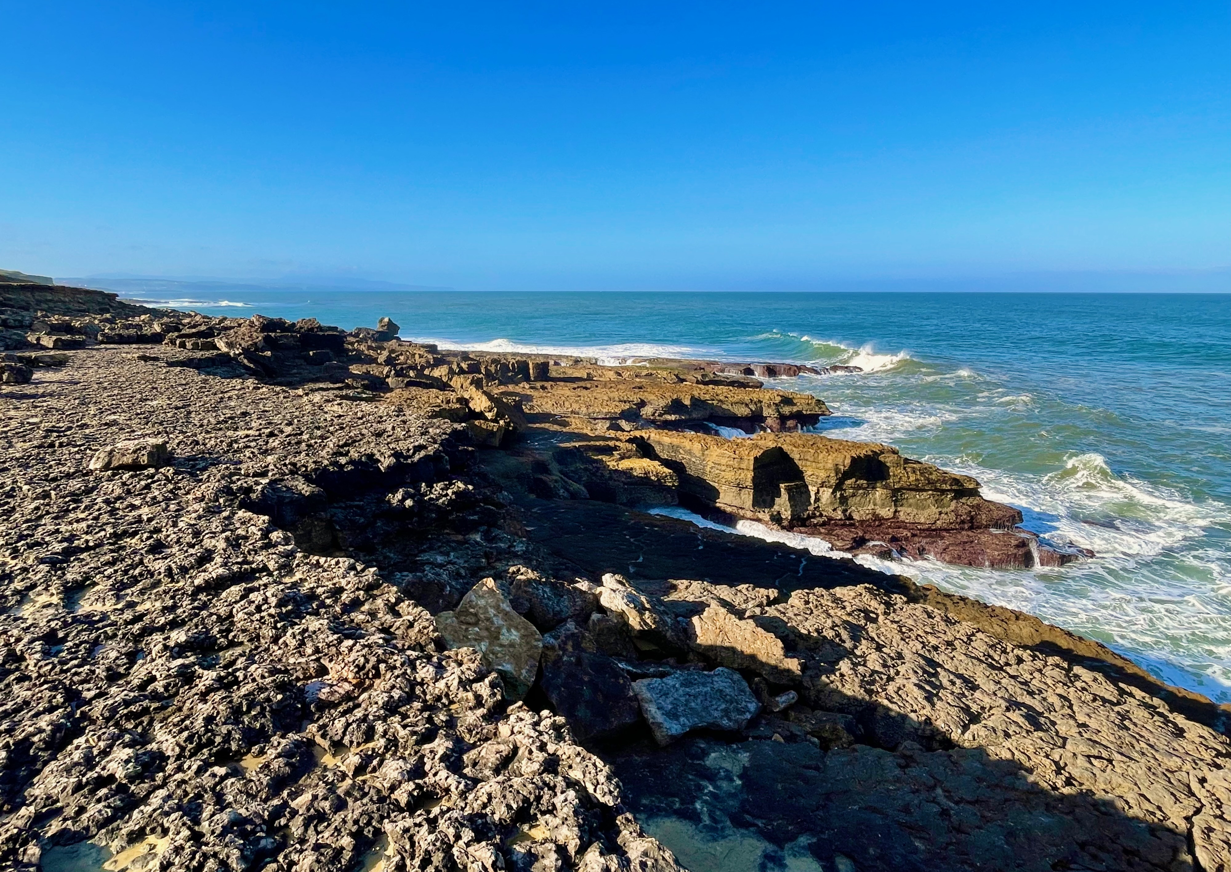 Cobbled streets take us from the sheltered fishing harbor and beach in the center of Ericeira to the exposed ruins of Fort Milreu with sweeping ocean views. Wooden walkways make the steep descent to surfer’s favorite Praia Ribeira d’ Ilhas comfortable and easy.