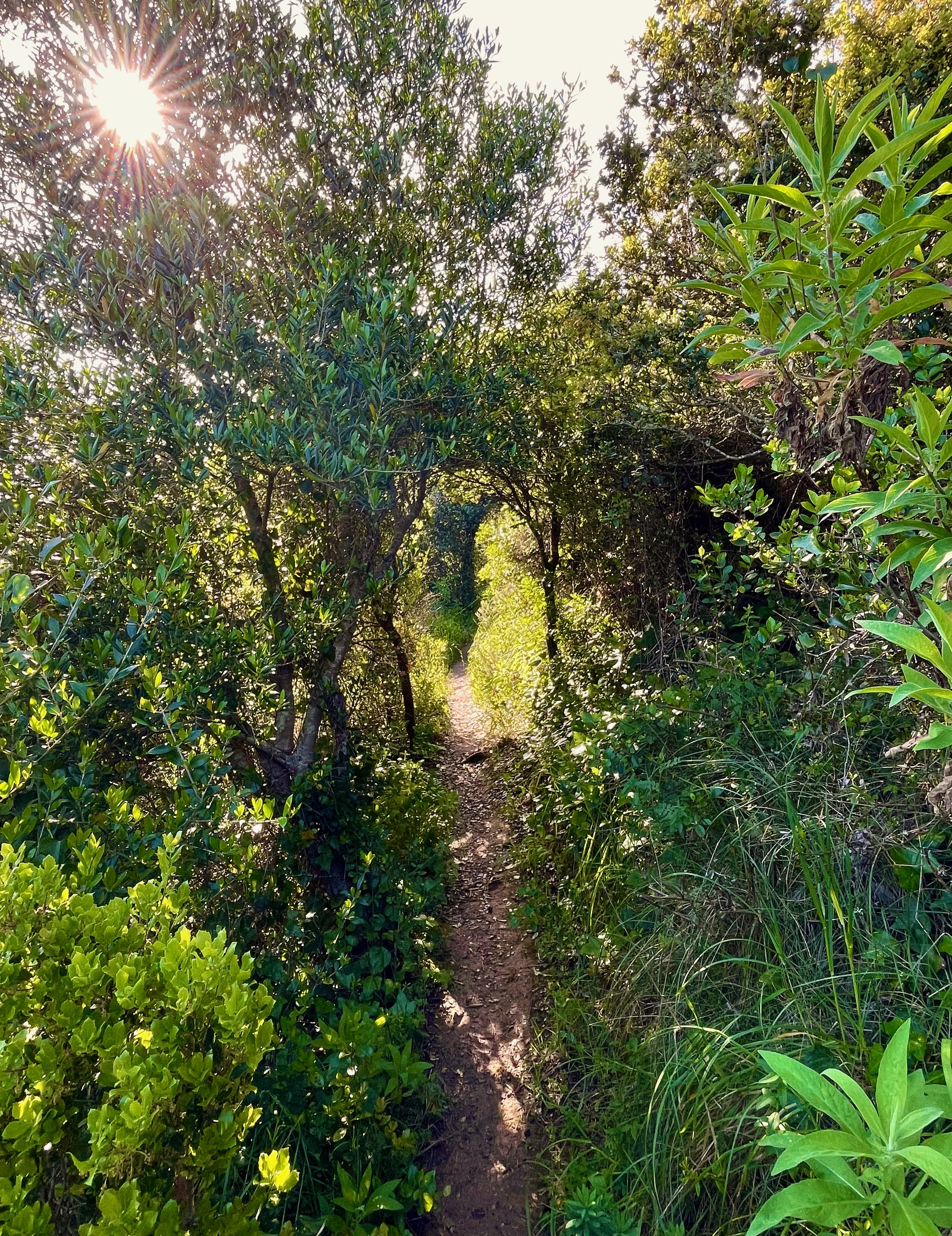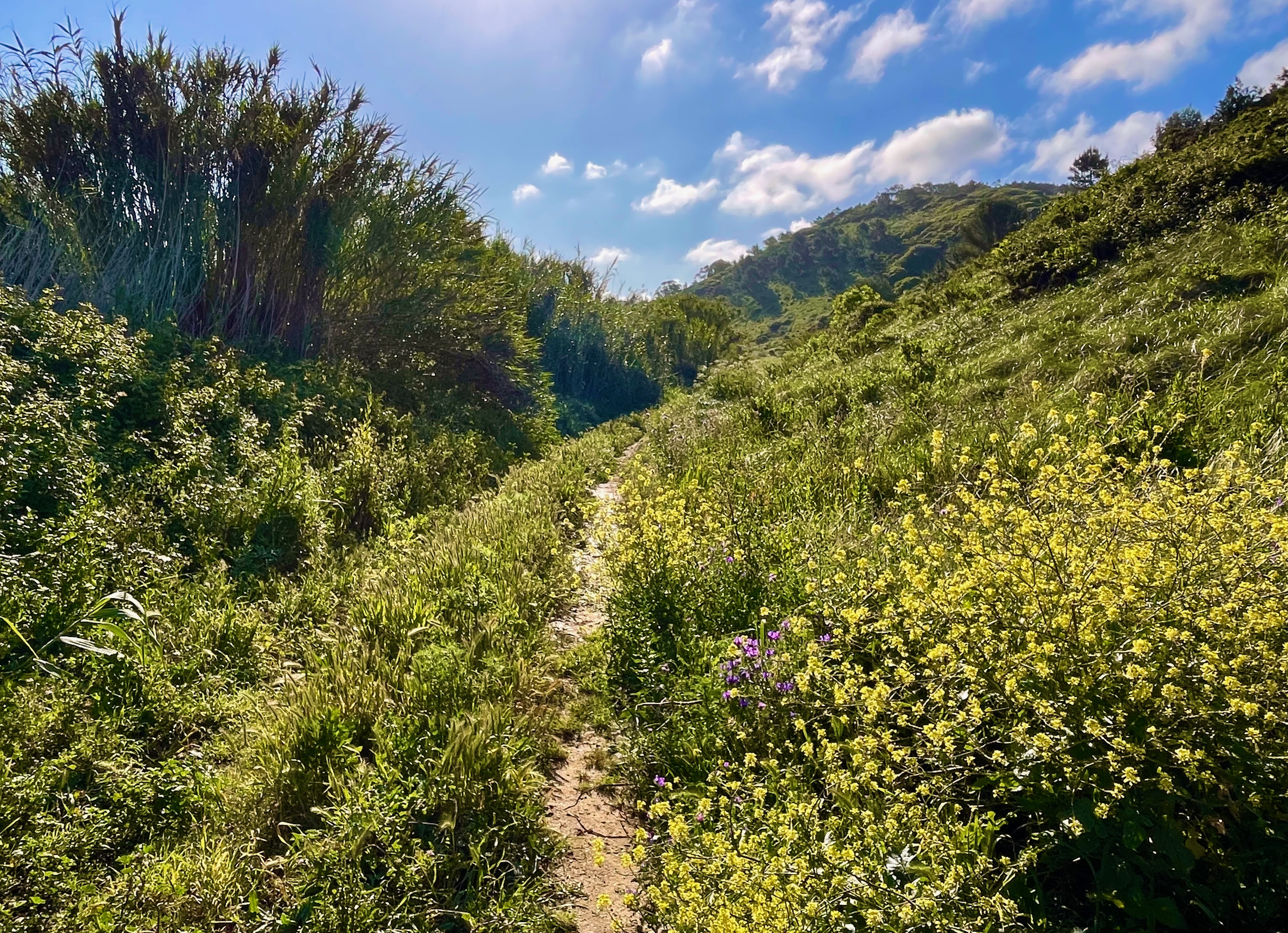 A narrow trail meanders through a creek valley and over hills for perfect trail-running fun. Air-freshening eucalypt trees and dense vegetation finally give way to the outskirts of Ericeira after a hidden river crossing.