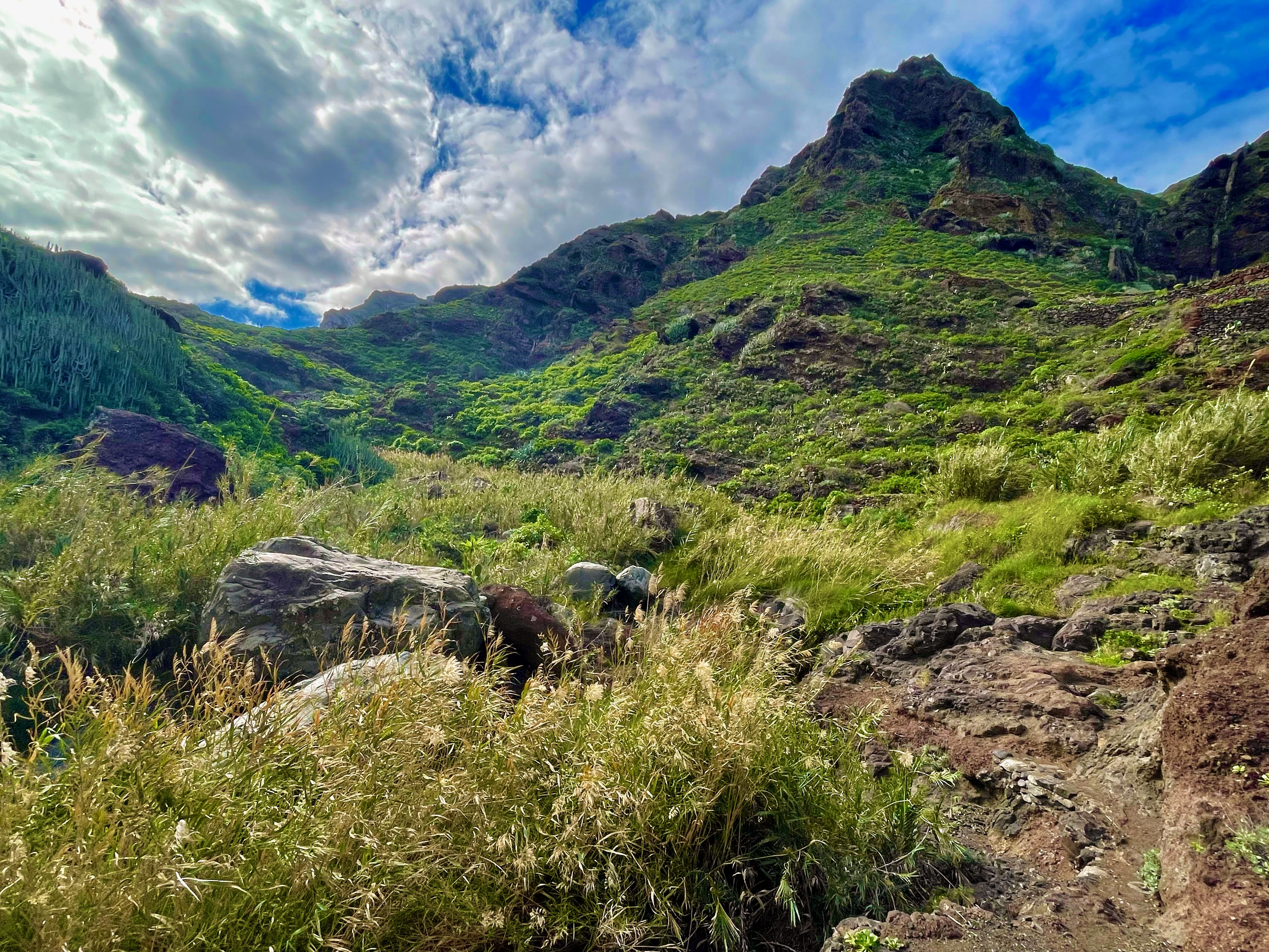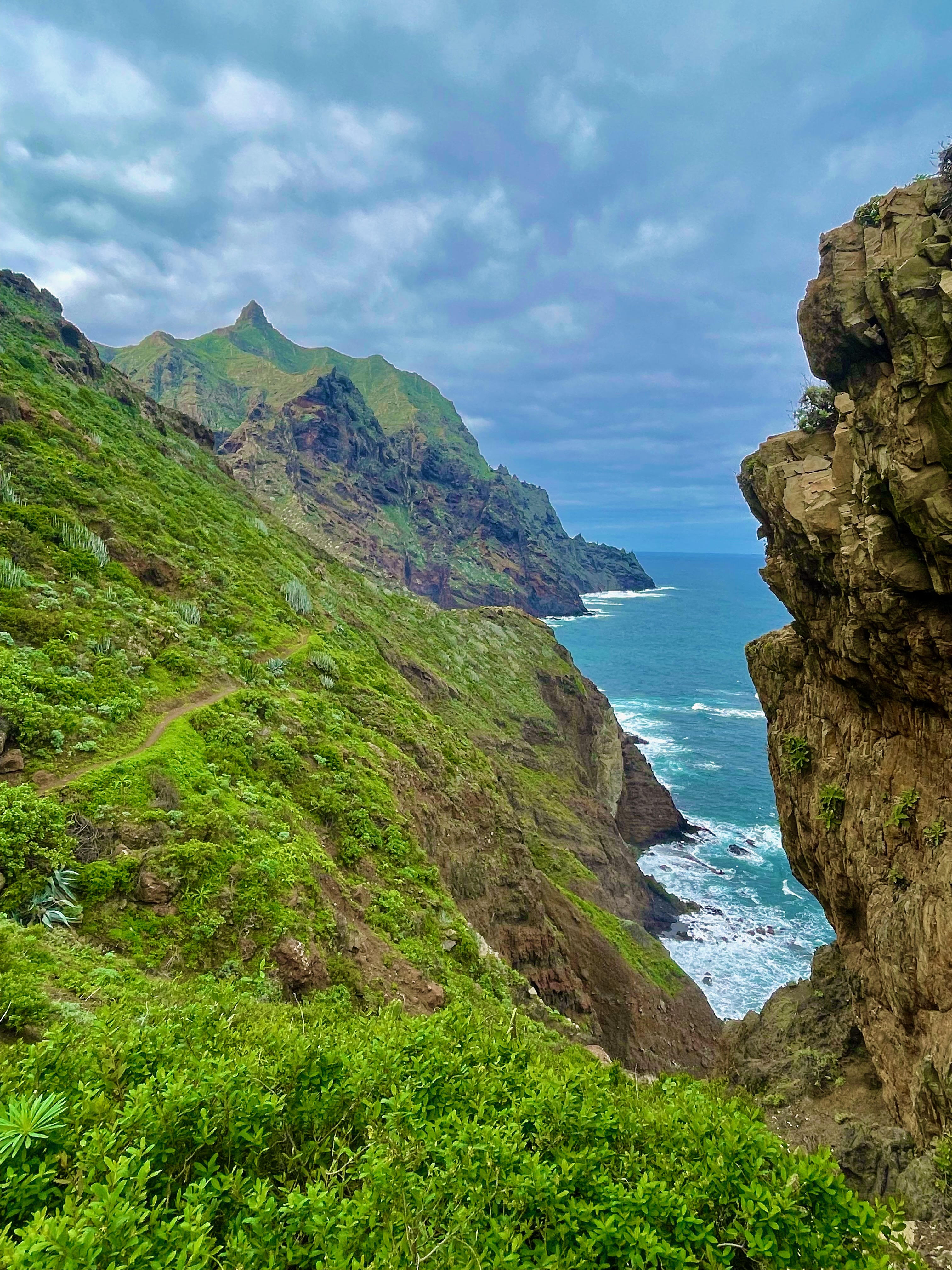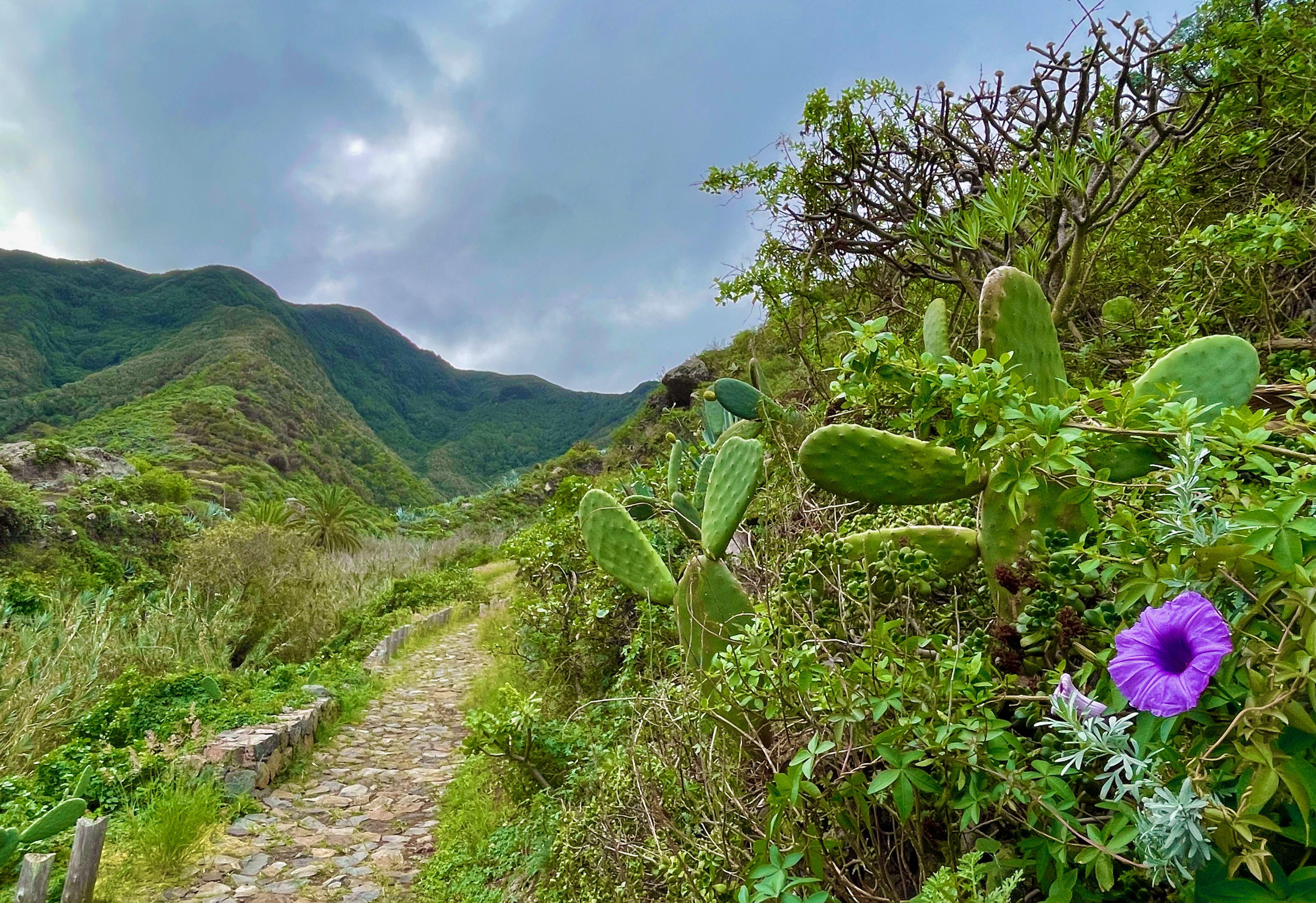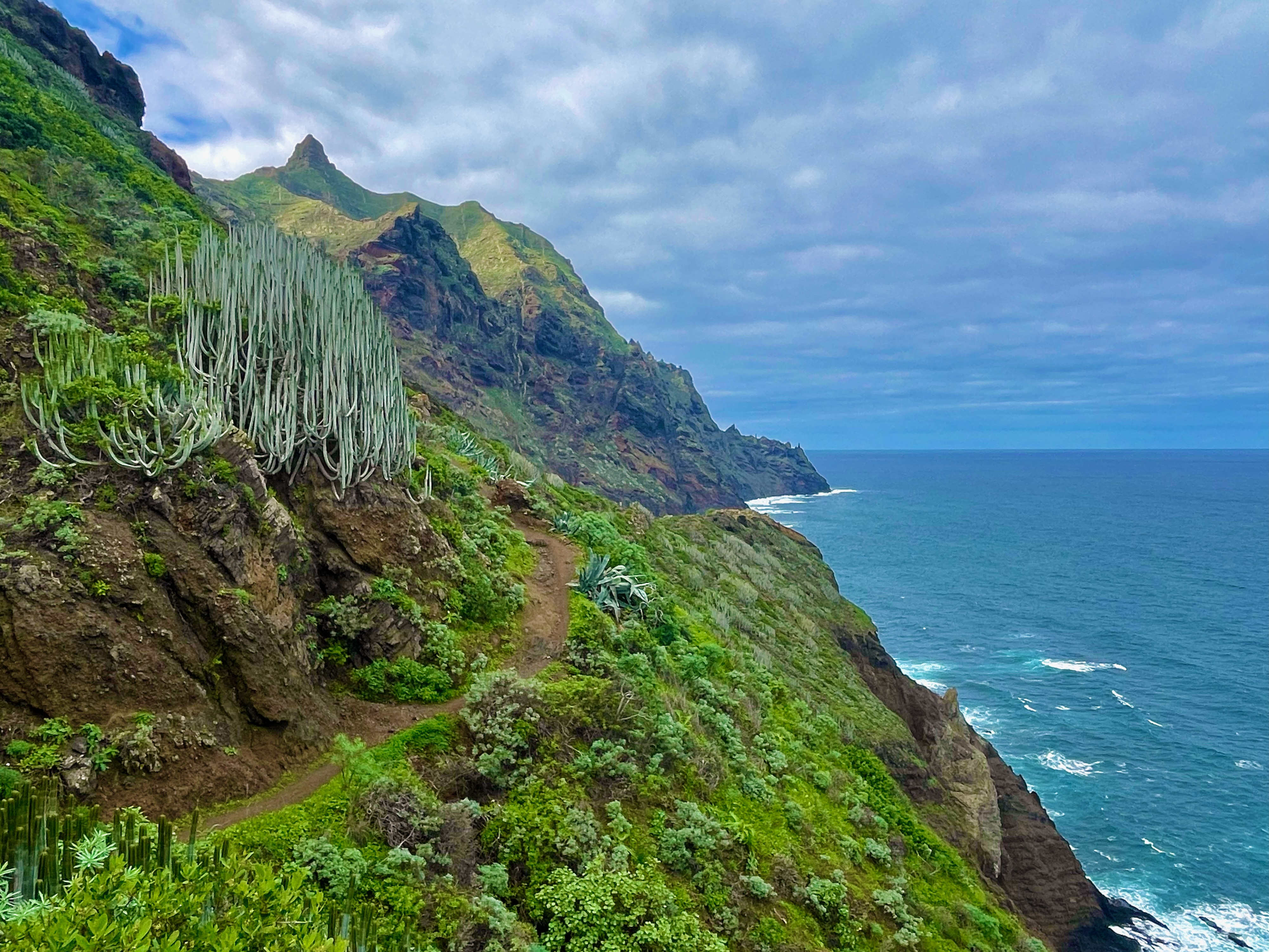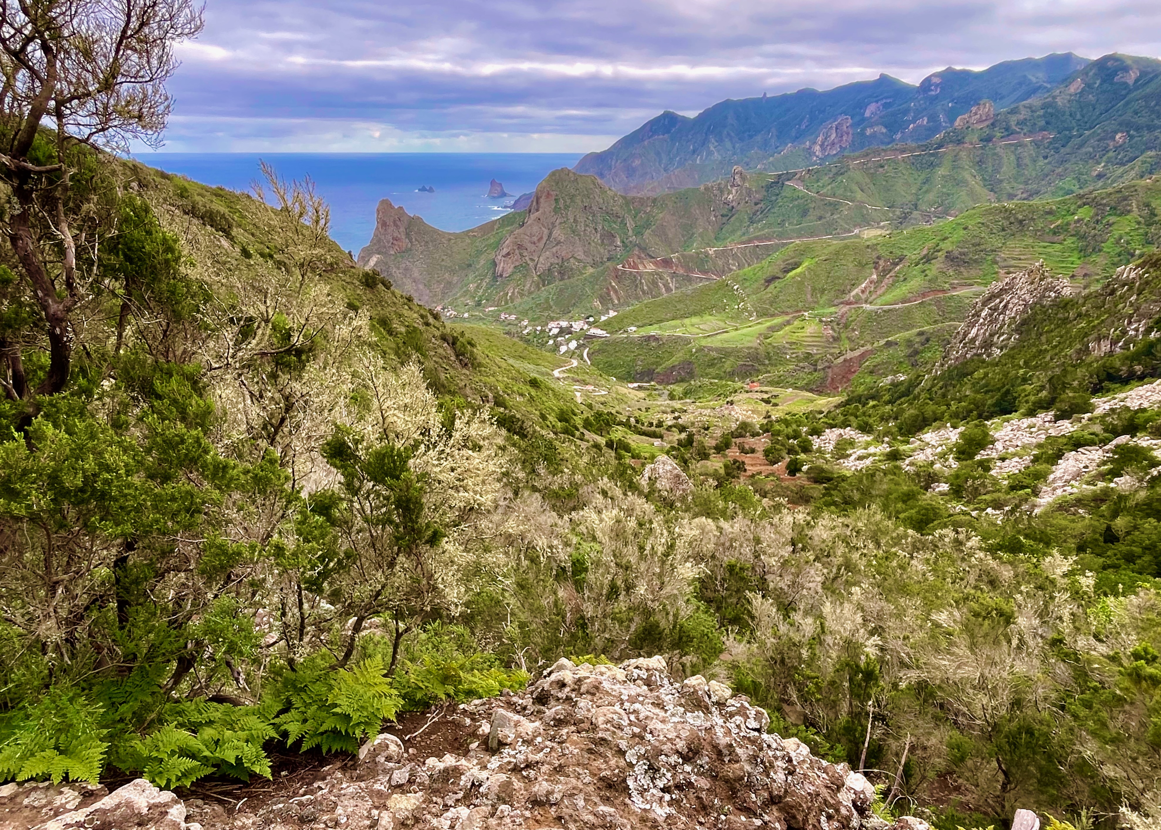 In beautiful flow, the trail returns to Taganana along coastal cliffs. Sweeping ocean vistas featuring some of Tenerife’s most striking rock formations open up as we round the bends.