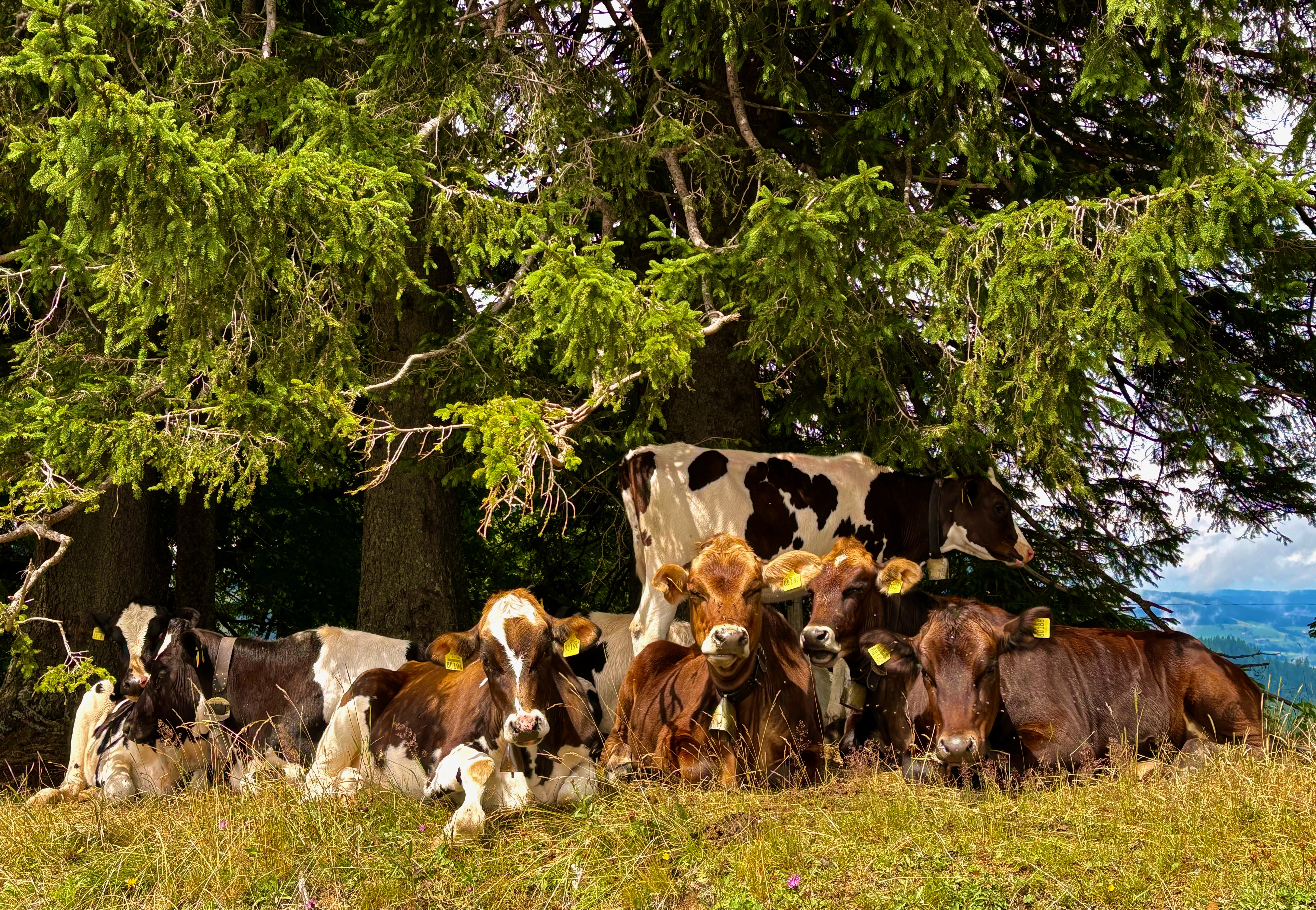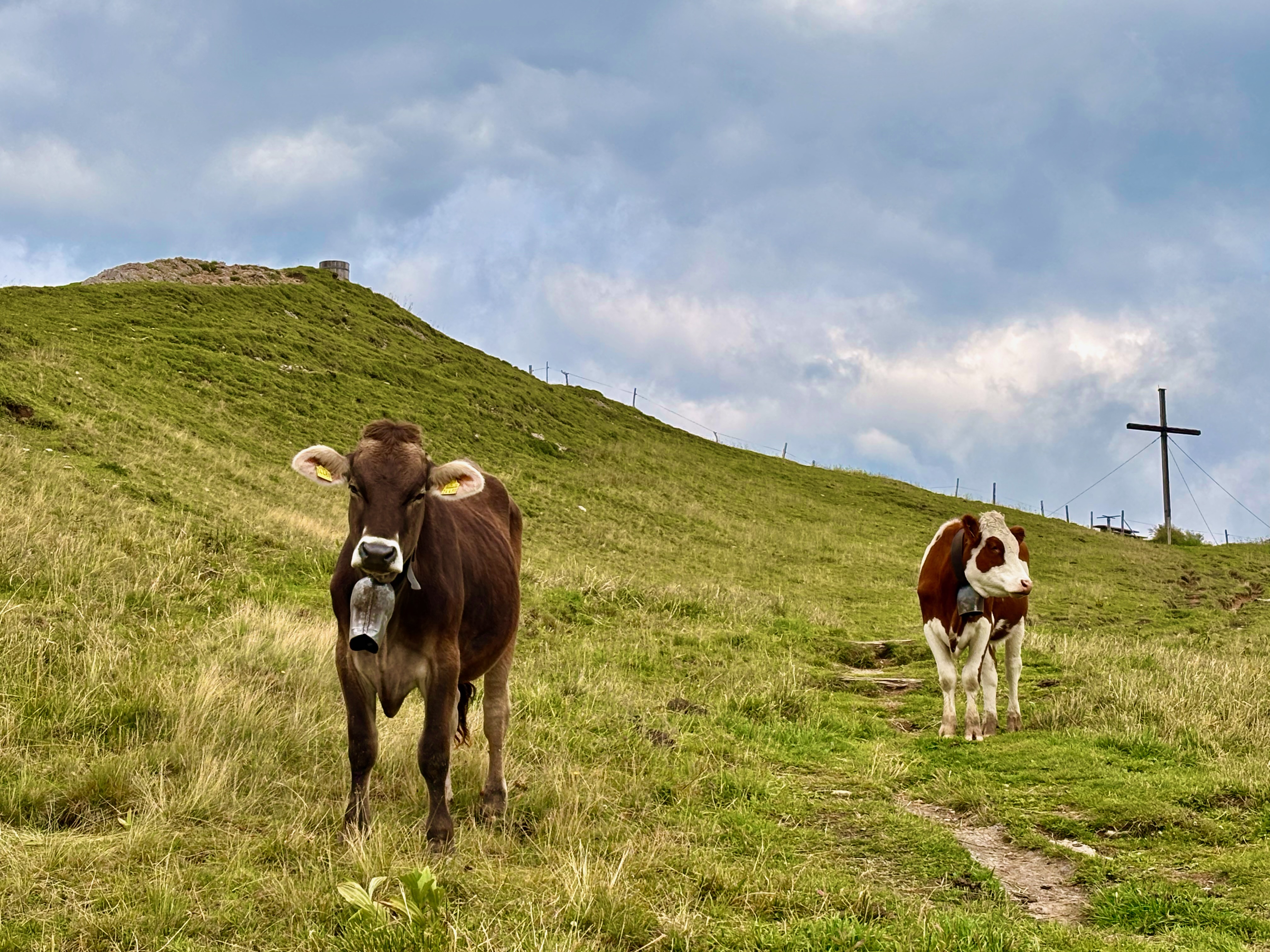 Facing challenging weather conditions, I took the chairlift up to Mittagberg, which starts the run at the very beginning of the Nagelfluhkette, with fantastic views of the picturesque town of Immenstadt. On the short stretch to the peak one encounters the first of many of the famed beauties of the region: Allgäu cattle.