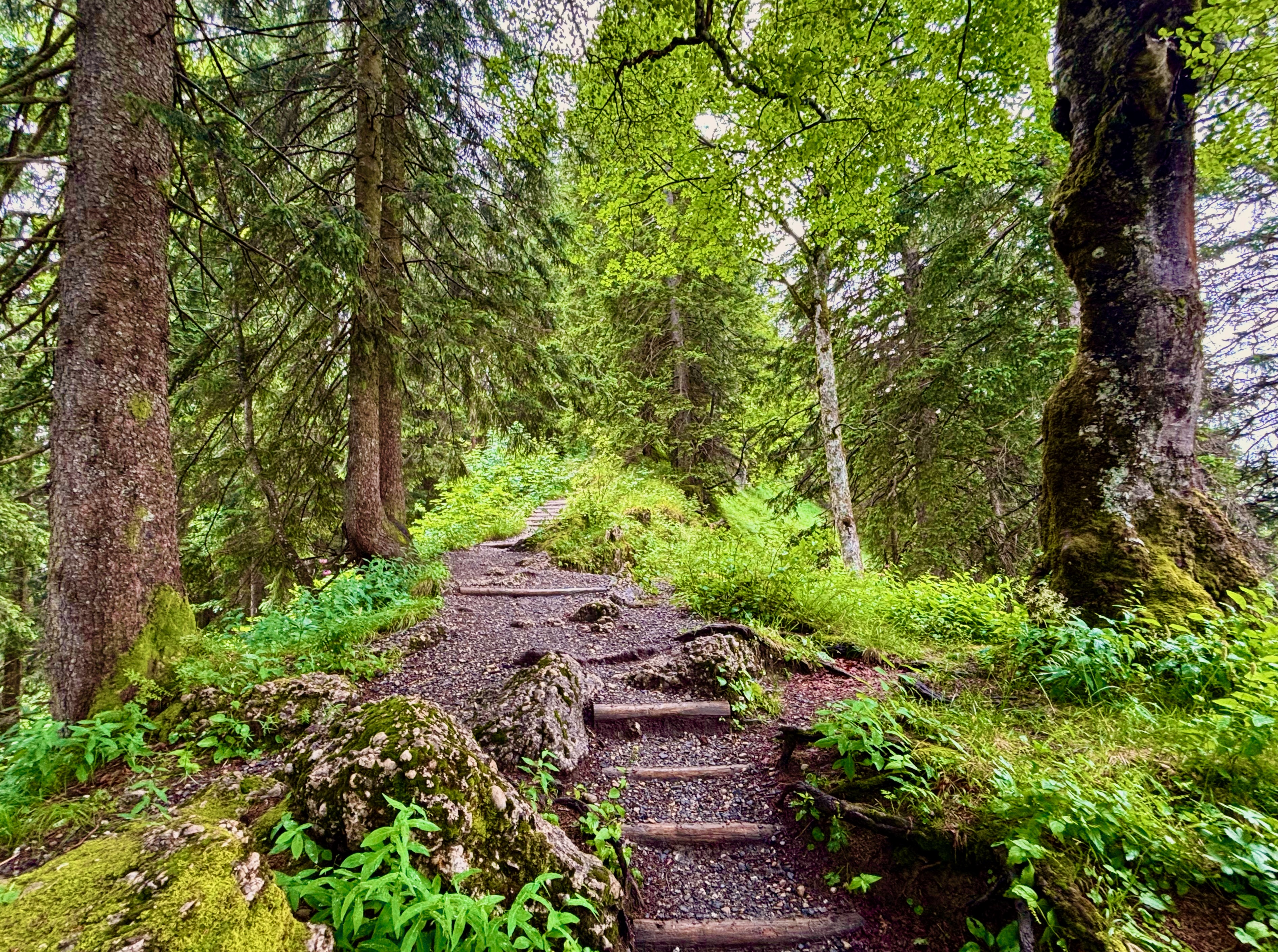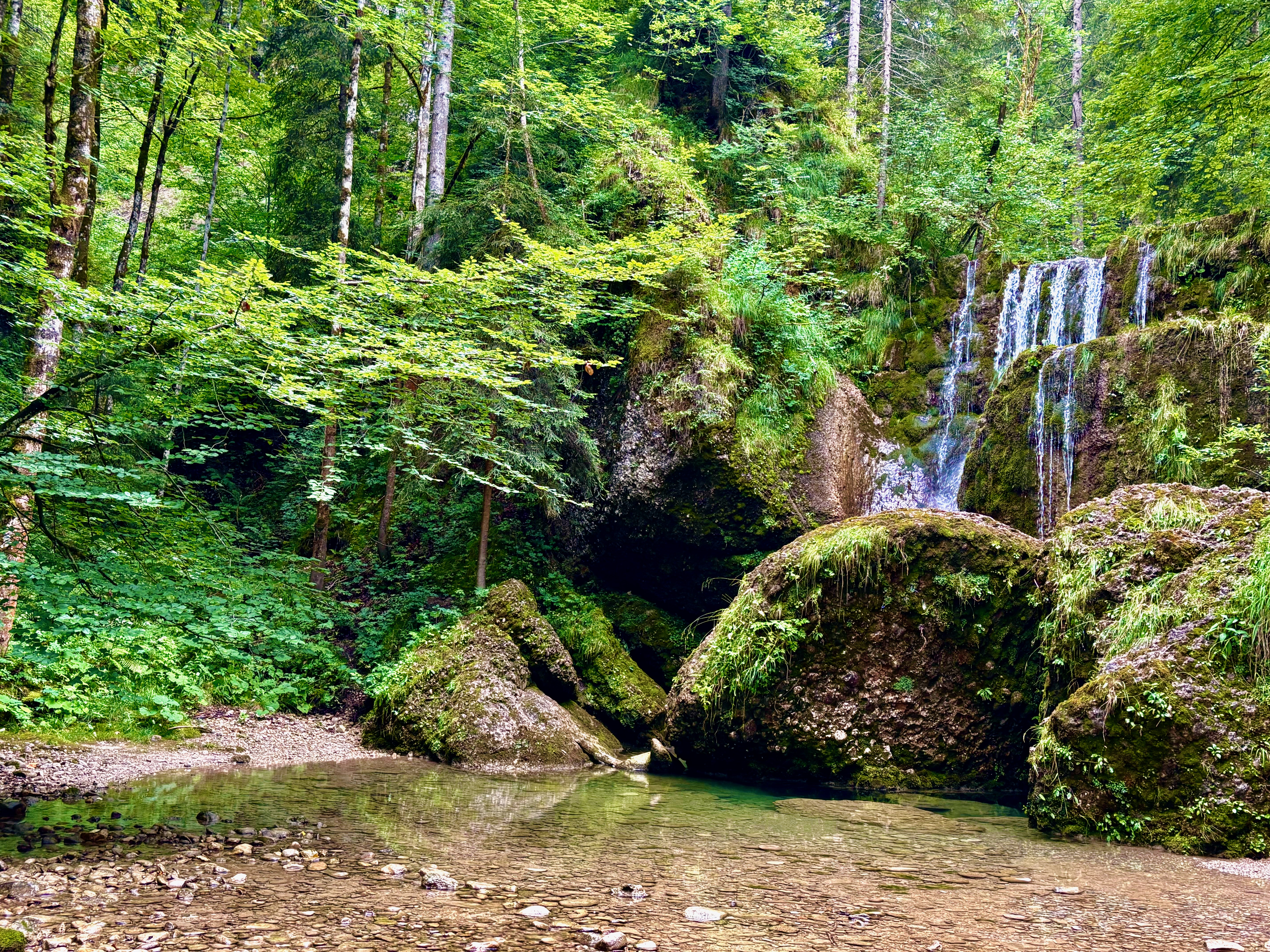 Wide forest tracks follow the clear Weißach stream with Alpe Unteregg offering food and drink, if you want to take a break. A final, gentle ascent crosses over to Steigbachtal, where a trail follows the creek along a series of magnificent waterfalls, before it turns back to the bottom of the Mittagberg chairlift.