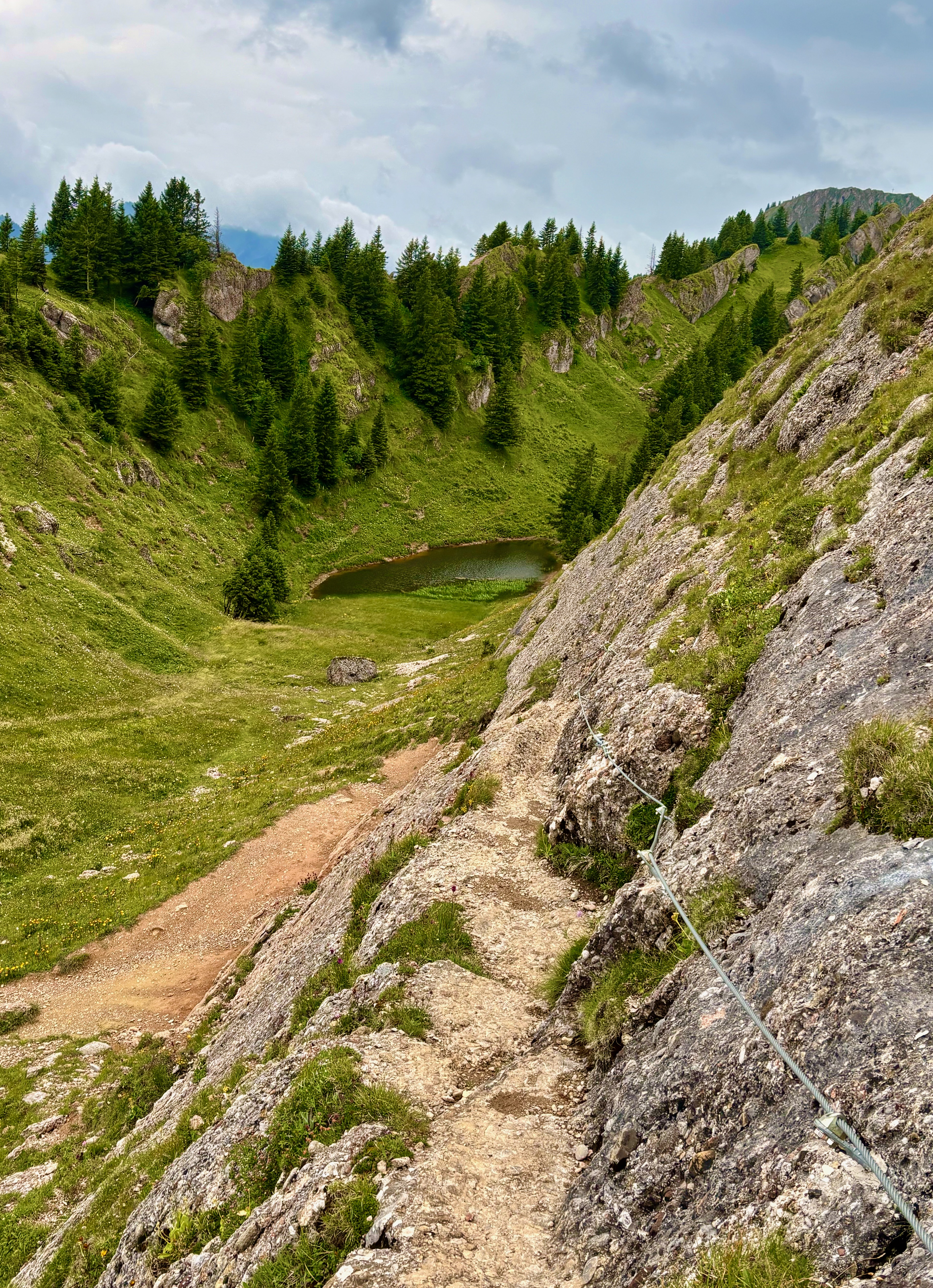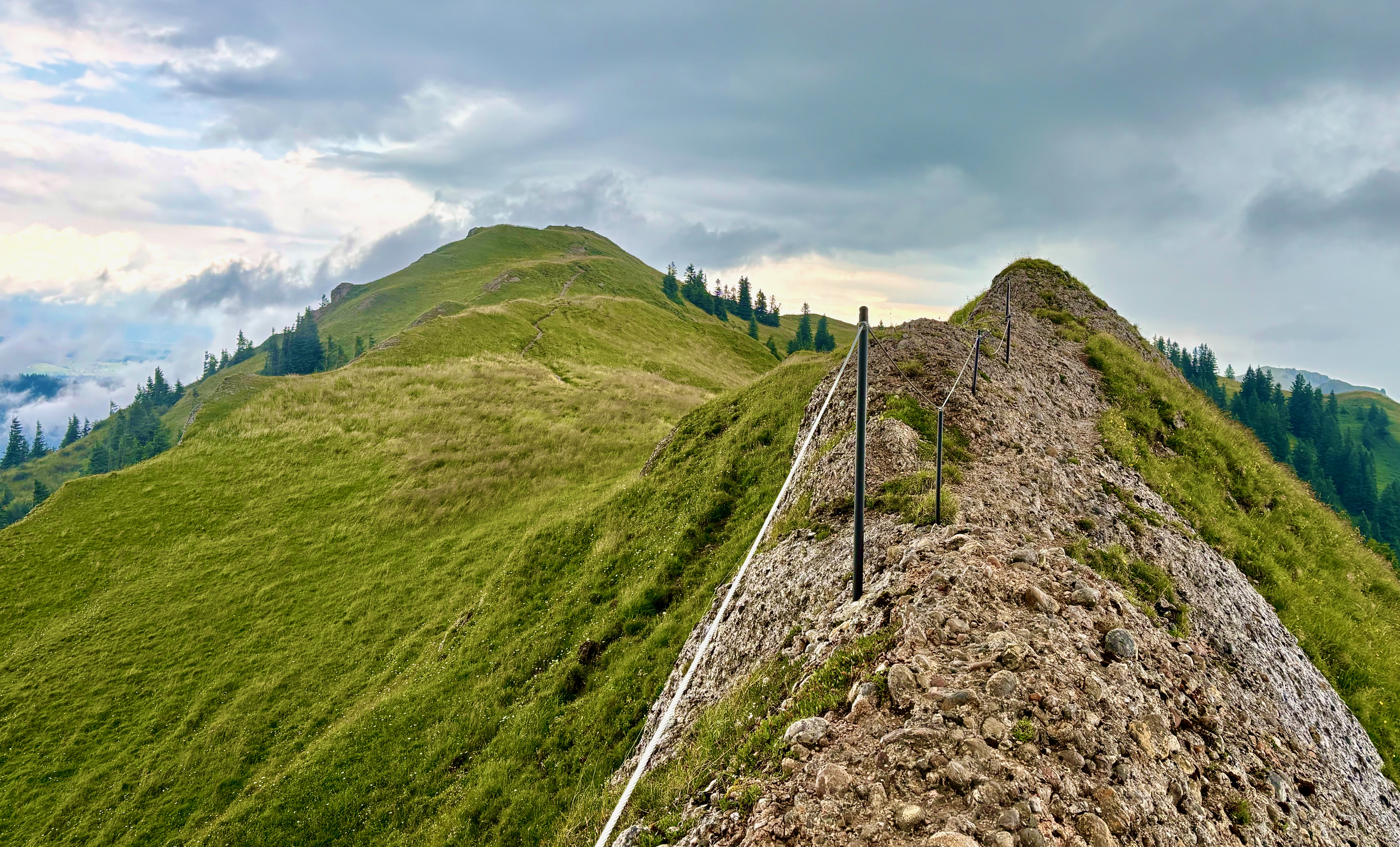 The mountain trail is technical, involving some secured climbing passages, but overall it is easily doable with some alpine experience – most passages are a real joy to run. Alternatively, it is possible to tackle the entire 21km-long ridge to Hittisau and circle back via public transport.