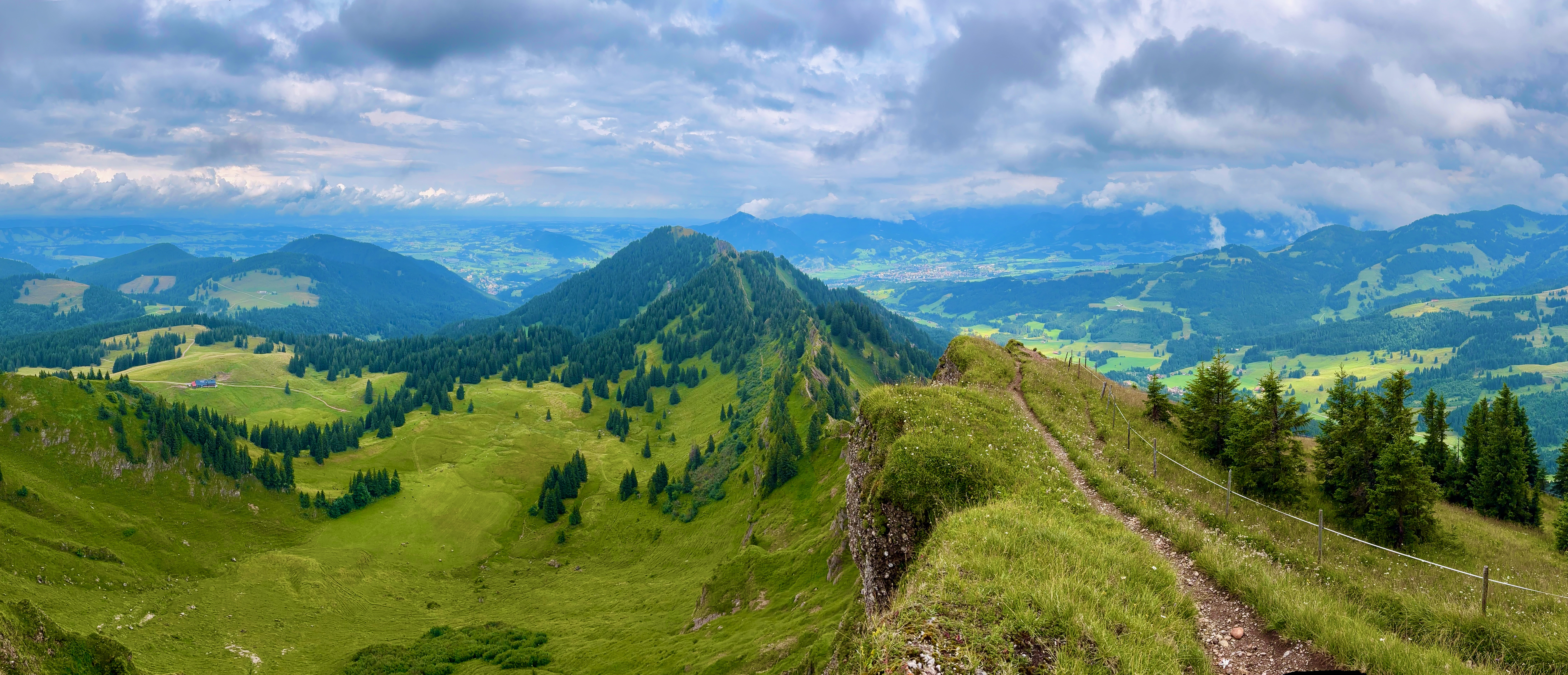 A string of more than a dozen mountain peaks is connected by a fantastic, challenging ridge-line trail and forms the Nagelfluhkette that crosses the heart of the Allgäuer Alpen. My route takes on the first eight mountain tops, aided by a chairlift for the initial ascent, before looping back to the starting point through the Steigbachtal valley.